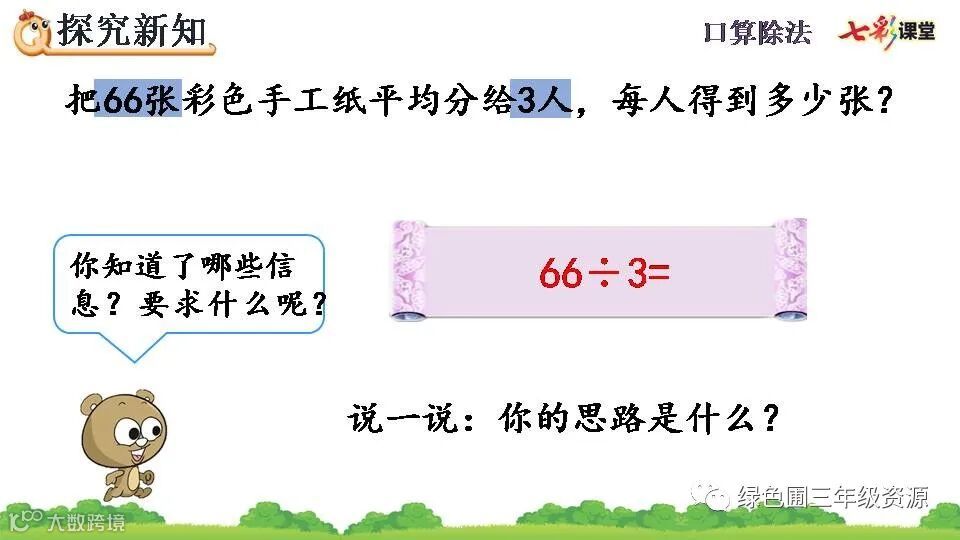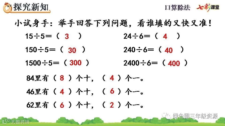 3.掌握除法竖式的书写格式,培养学生认真审题的习惯。