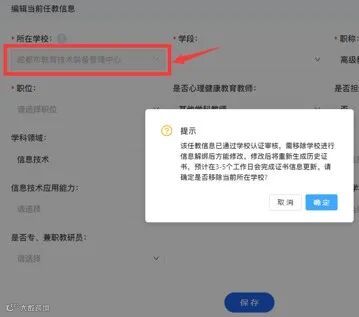 教师转校流程:平台里修改个人信息选择新学校——新学校管理员审核身份