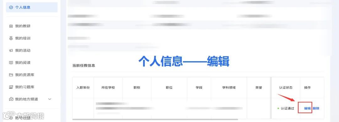 一、教师转校,可在国家中小学智慧教育平台登录后,点击“个人中心”——在“个人信息”里面点击“编辑”