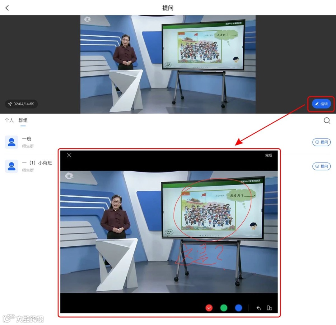 在弹出的【提问】详情页上,学生可以通过【编辑】对有疑问的课程内容进行重点标记,使提问更有针对性。