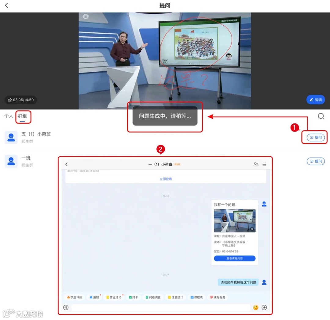 学生还可以将问题发送至【群组】,例如师生群、家校群等,与群里的老师、同学、家长共同交流探讨。