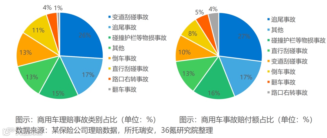 对财险公司而言,商用车车险保费规模巨大却风险极高,赔付率超过85%,综合成本率约120-130%,全行业承保亏损情况普遍存在。某保险公司商用车理赔数据显示,众多事故类别中,追尾和各类刮碰事故是商用车主要的事故类型,占所有事故的54%。赔付额方面,追尾事故占了总赔付额的27%,在各类事故中居于首位。通常事故发生后,财险公司只能收集到投保人及理赔报案等基础业务数据,无法获得车辆的行驶轨迹和驾驶情况等信息,因此无法分析赔付率居高不下的背后原因,更无从预防事故并降低事故率,商用车降赔难已成保险公司一大痛点。