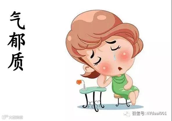 形体瘦者居多;忧郁面貌;多愁善感、忧郁脆弱、敏感多疑;经常闷闷不乐,爱叹气;胆小,易心慌失眠;喉部常有堵塞感或异物感;舌淡红,苔薄白;两肋胀痛;打嗝;不排气,腹胀;易怒;经量少;子宫肌瘤;易患忧郁症、肺结核、乳腺增生等。