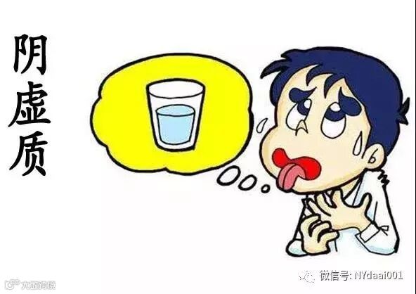 易上火,脾气大;怕热,经常感到手脚心发热;皮肤偏干、易生皱纹;口干舌燥,喜冷饮;易失眠;面色潮红;目干涩,视物昏花;小便短涩,大便干燥;唇红微干,舌红少津少苔;易患口腔溃疡、便秘、甲亢、更年期综合征。