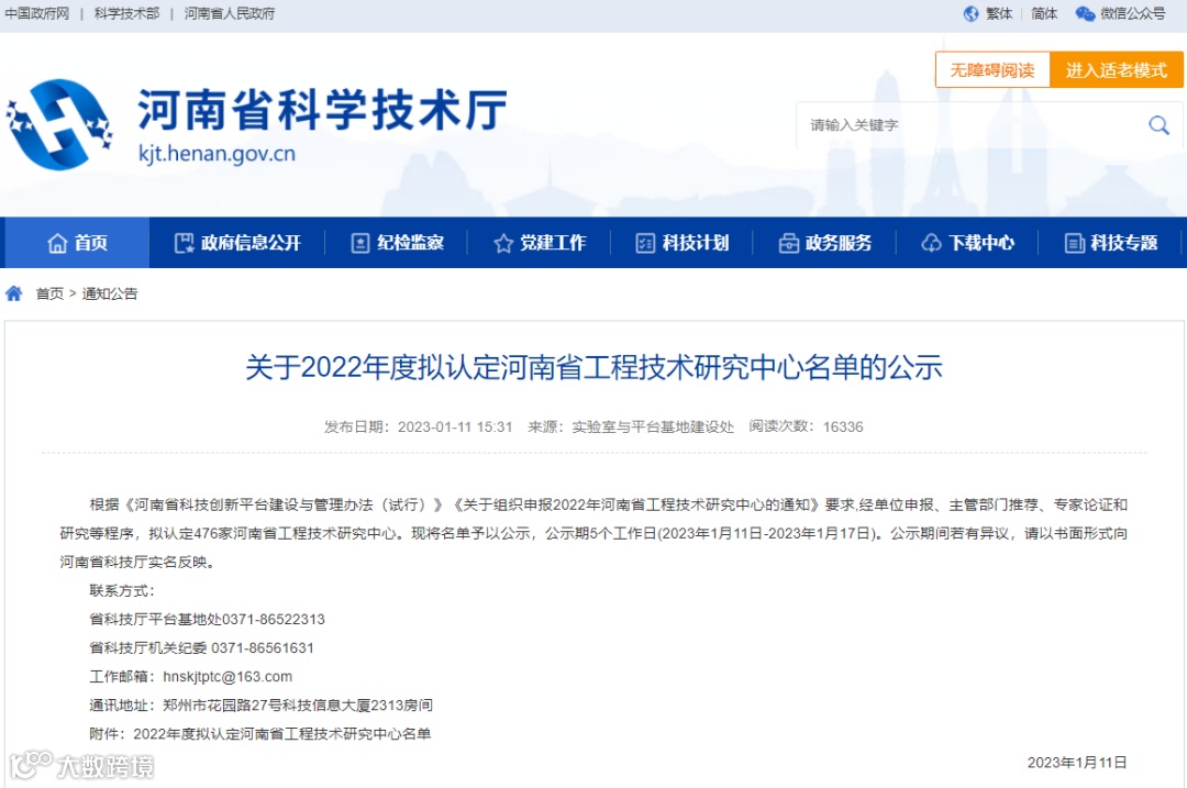 导读:近日,河南省科技厅公示了2022年度河南省工程技术研究中心名单,我司位列其中,被认定为“河南省公路智能治超系