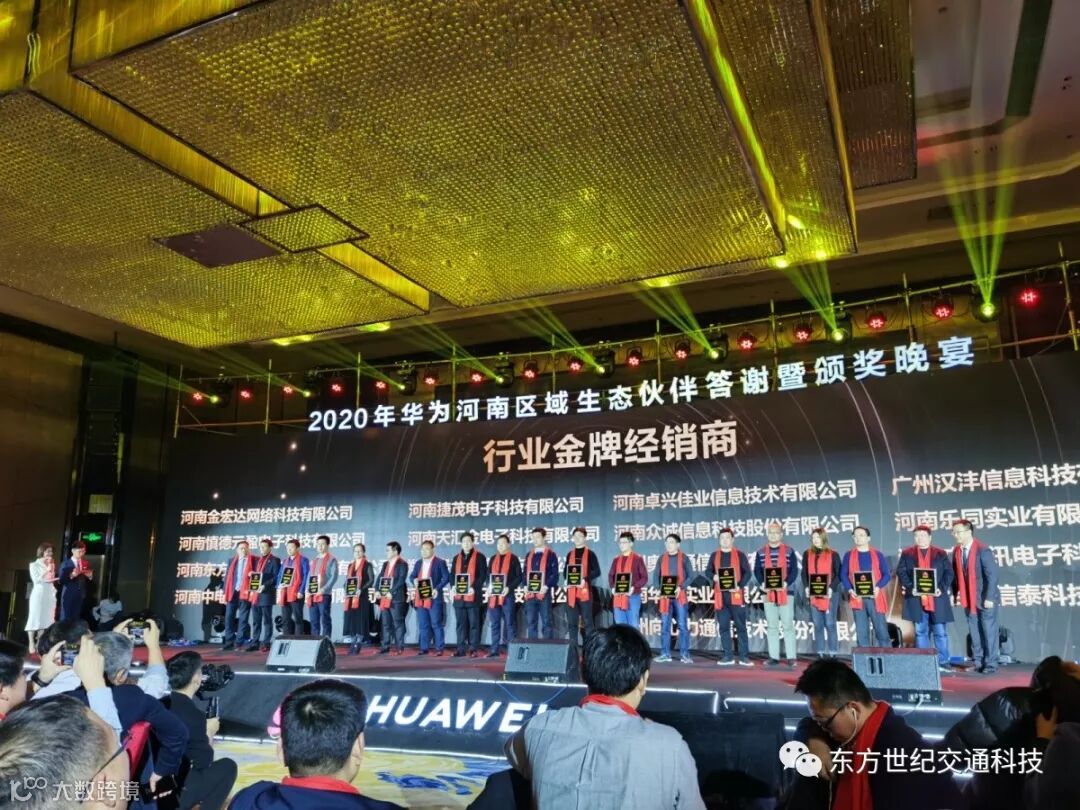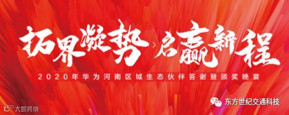 2020年1月9日,由华为技术有限公司河南代表处主办的“拓界凝势 启赢新程——2020年华为河南区域生态伙伴答谢暨颁奖晚宴”在喜来登大酒店隆重举行,欢聚一堂,共襄盛会。河南东方世纪交通科技股份有限公司作为华为在智能交通领域的合作伙伴重要嘉宾应邀出席。