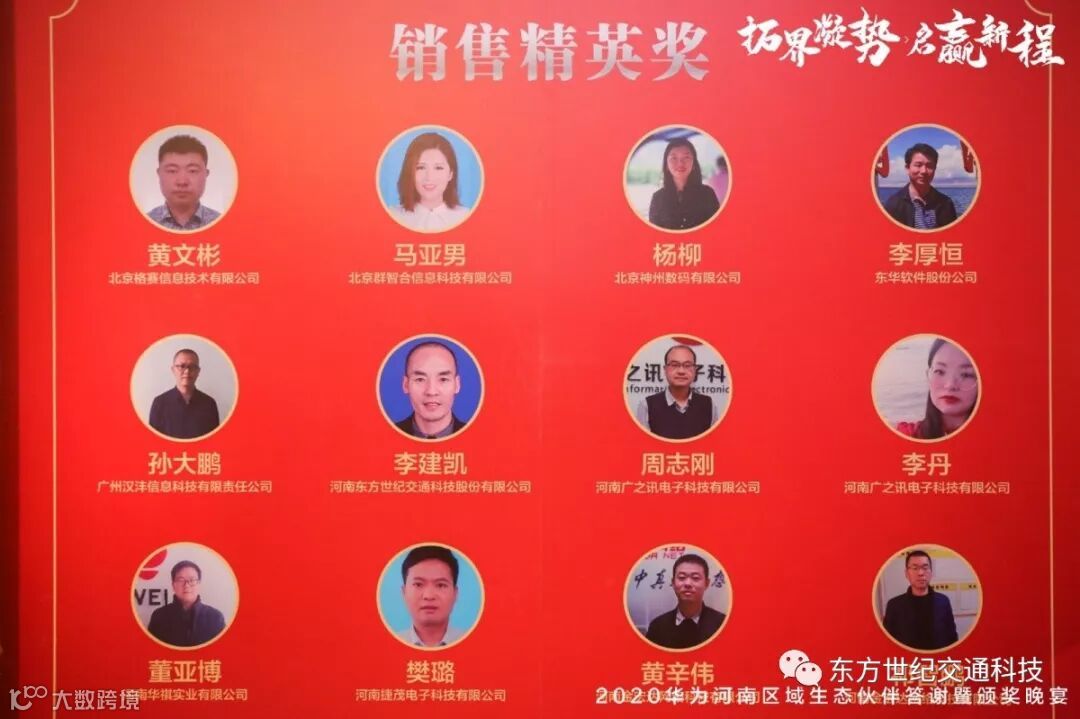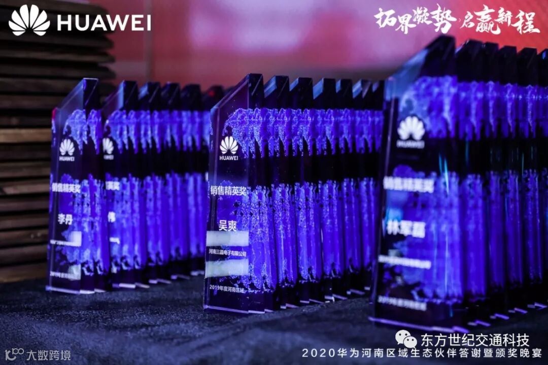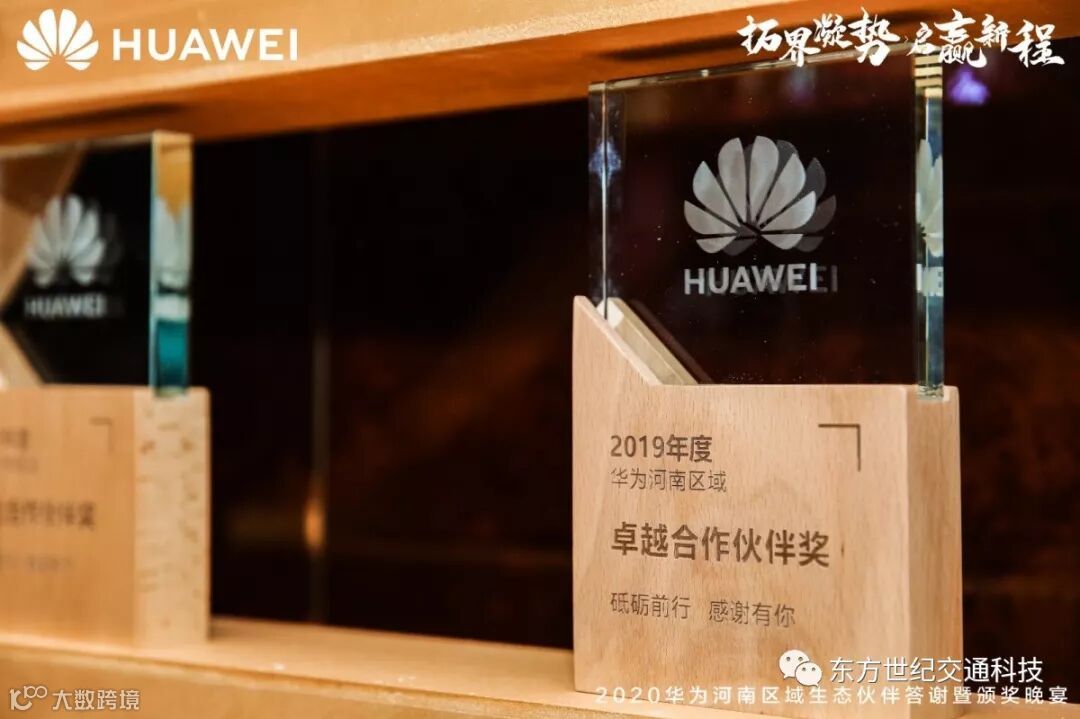 本次颁奖晚宴授予东方世纪2019年度华为河南区域“行业金牌经销商”及“卓越合作伙伴奖”。授予东方世纪李建凯“销售精英奖”,刘晓“售前精英奖”。这是东方世纪于华为在合作史上写下浓墨重彩的一笔。