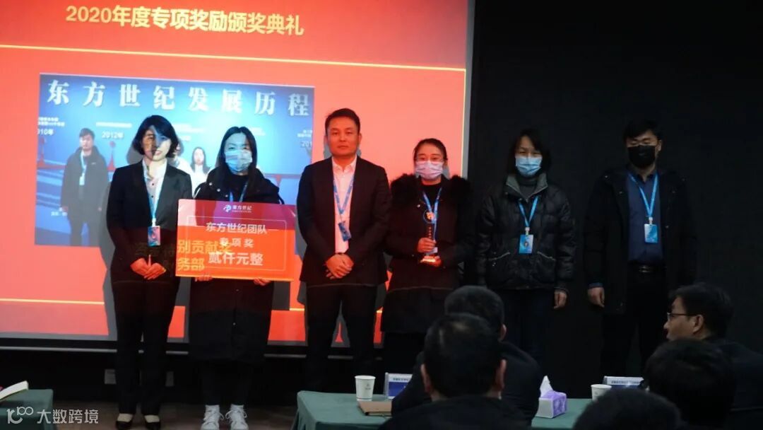 东方世纪作为上市公司和党领导下的组织,一直把社会责任放在心上。在疫情期间,张总带领业务支撑中心部分成员积极筹措资金和物资进行定向捐赠,分别向高新区疾控中心捐款5万元,向太康县清集镇捐款一万元,在物资紧缺的情况下通过各种方式寻找货源,向湖北省黄梅县捐赠医用口罩2800个,额温枪30个,为疫情的胜利做出了贡献,由董事会秘书李玲霞代表董事会为他们颁发慈善特别贡献奖,感谢他们辛苦的付出!