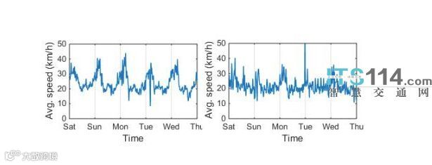 论文中展示了具备强周期性的路段(左图),以及不具备此类特征的路段(右图)。