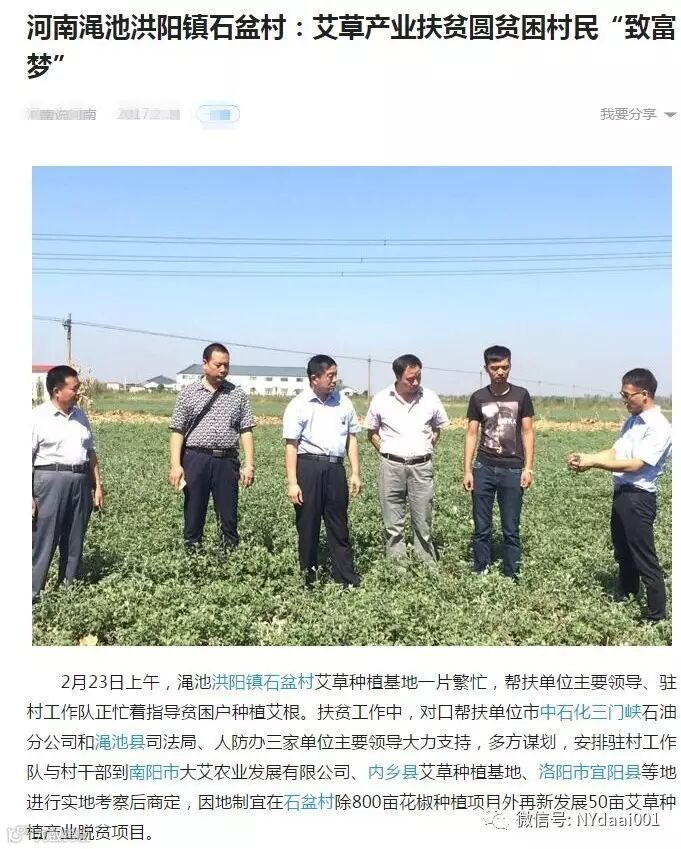 为落实精准扶贫工作目标,南阳大艾董事长阚清恒就精准扶贫工作进行调研,强调发展是解决贫困问题的治本之策,统筹推进扶贫与发展,深挖产业发展优势,做好产业扶贫文章;扩建建基地、强龙头、活流通、兴产业,利用资源,调整农业产业结构,激发企业发展活力,增强周边贫困村内生,将产业扶贫做实做细。