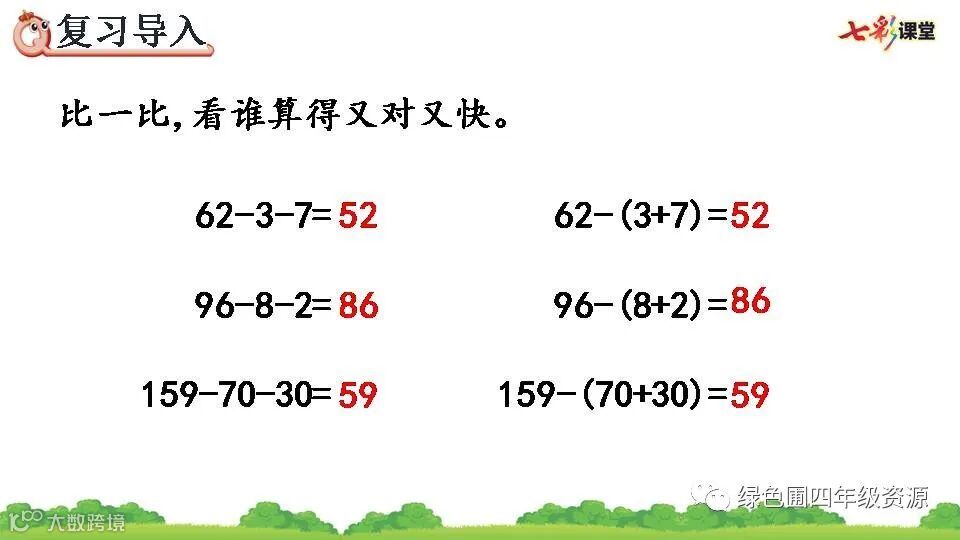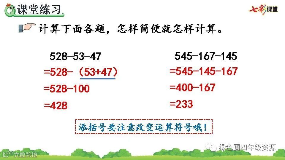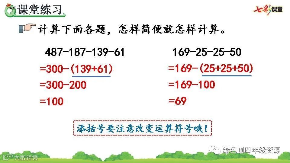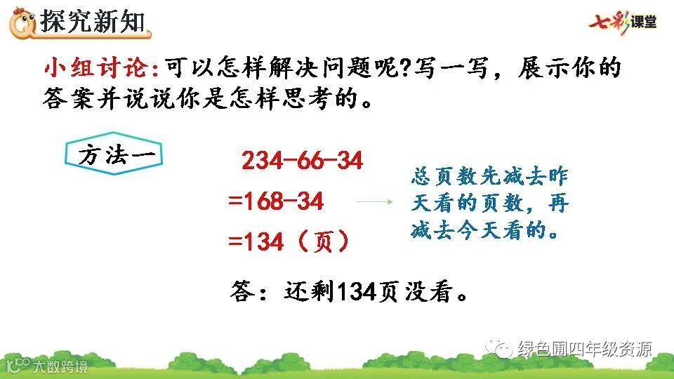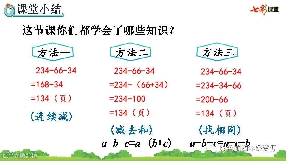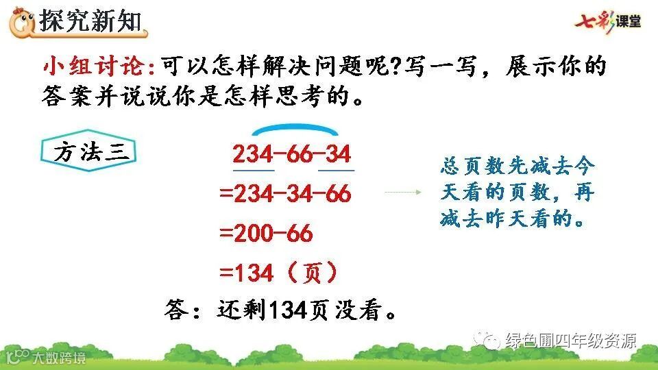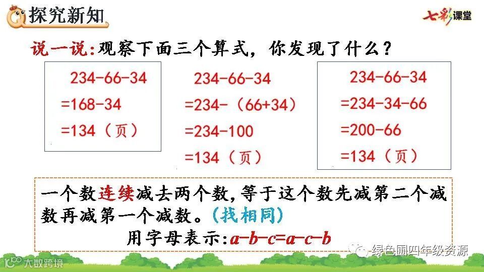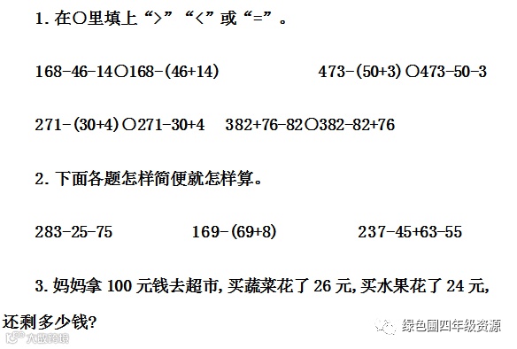 1.234-66-34=134(页) 2.34 134 66 34 234 100 134 66 200 66 134 3.和 a-b-c=a-(b+c) 4.✕ ✕ 5.- 48 1500 + 415 - 74 + 26