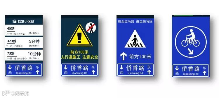 三 是安装多功能路灯和路灯杆。改造后的路灯除了常规照明功能外,还会在人流活动密集的区域,发射免费WIFI。另外,在大型小区出入口和公交站附近的路灯杆上,设置信息屏,上面将有最近的公交到站信息、自行车道指引、施工占道提醒,还有周边楼宇和公园的信息等。有了这种集合功能的路灯杆,路面上整体交通标志杆可以减少32%。这些路灯杆将以三种形式呈现。