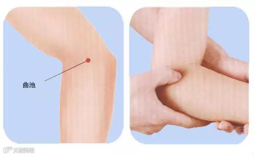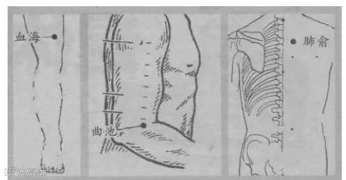 曲池穴为手阳明大肠经合穴,肺与大肠相表里,故此穴善治皮肤瘙痒和内脏湿热疾患,是驱除周身之风的常用穴,在治疗过敏性皮肤病中起到的作用尤为突出,还用于过敏性哮喘的灸治。艾灸时采用悬灸,每天灸1次,施灸时间为30分钟。