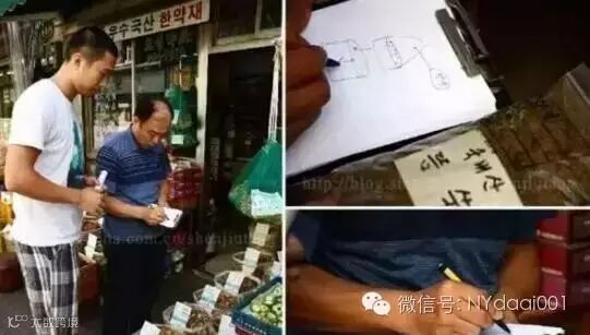 韩药市场开个药材小铺的大叔看到我手中的艾条问我这是什么东西。其实他的铺面上就有韩国艾绒在卖。一个周的访问中我了解到,韩国人都没有用艾条的习惯,他们把艾绒搓成塔放在身上或者器具上艾灸。药材市场的大叔怕我不理解韩国的艾灸方式,还特意找笔给我边画边讲。