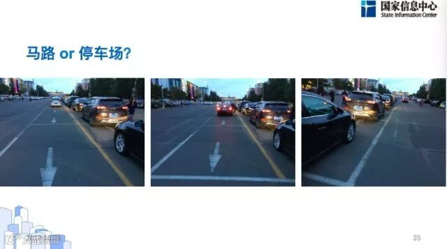 大家来看这几张照片,车是在马路上停的,这是一种时空转换。这是有特定条件的,周边小区比较密集,晚上10点到第二天早上6点期间留出两条道就可以了,但是你6点之前必须就给开走,不然到白天的时候就变成了机动车道。智慧化的方式不仅体现在信息化的层面上,还体现在找出新的解决办法。