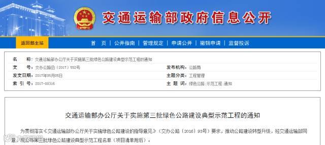 近日,交通运输部印发了《关于实施第三批绿色公路建设典型示范工程的通知》,公布了第三批绿色公路建设典型示范工程名单。