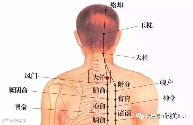 首先是大杼穴。大杼穴属足太阳膀胱经,在背部,取穴时,采用正坐低头或俯卧位,在第一胸椎棘突下,督脉旁开1.5寸处取穴。艾灸大杼穴具有强筋骨,通经络,调气血的作用。