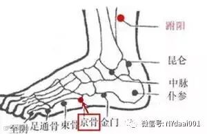 第三个穴位是京骨穴。京骨穴属足太阳膀胱经,在足外侧,取穴时,正坐垂足着地或俯卧位,在足跗外侧,第五跖骨粗隆下,赤白肉际处取穴。艾灸京骨穴可以舒筋通络,治疗项强。
