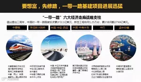 中蒙俄、新亚欧大陆桥、中国-中亚-西亚、中国-中南半岛、中巴、孟中印缅等六大经济走廊作为“一带一路”的战略支柱,将“一带一路”战略构想落到了实处。