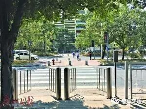 3月2日上午11时许,记者来到留仙大道南山区社会福利中心公交站旁的红绿灯路口,看到智能行人过街系统由并排的两个闸机和一个监控系统组成。闸机由系统自动控制,每当红灯亮起时,闸口自动关闭;而绿灯亮起时,闸口自动打开。