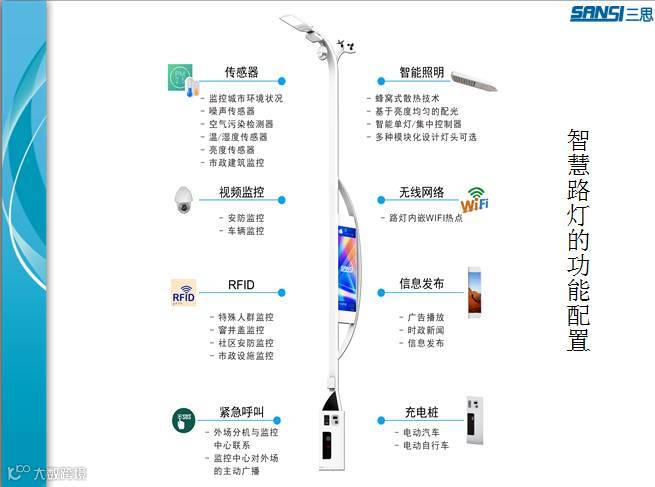 对于智慧城市来说,需要来整合这些公共的采集、传输、发布的功能,需要有这么一个承载智能功能的节点。我们也是了解和研究以及做一些实践。现在一个新兴的市政设施,就是智慧路灯应运而生。智慧路灯在原来灯杆的基础上,把信息采集、信息传输、信息发布整合在一起。路灯在市政设施里面,又是不可或缺的,把刚才模块放到路灯里面,这个是非常好的优化,也是非常好的集成,从物理安装结构来说,安装在一起可以带来很大的便利。