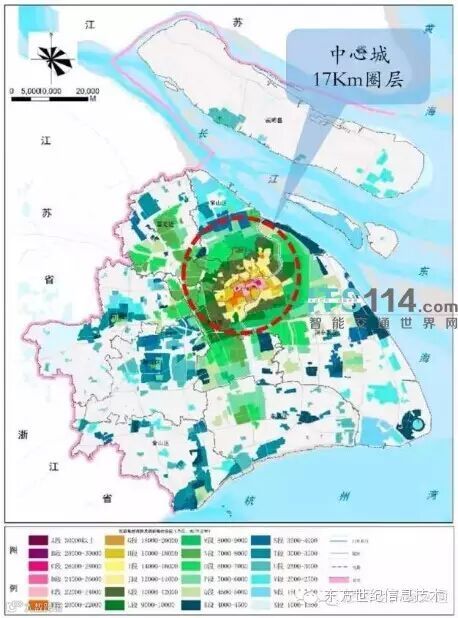 洞察力并非自动从大数据中产生。在图1所显示的上海市商业地产价格指数分布中,颜色越是偏冷色调,价格越低。如果不加上以人民广场为圆心,以17Km为半径的圆环,不一定能够注意到宝山新城商业地产的价格远低于环状地区其他部分。