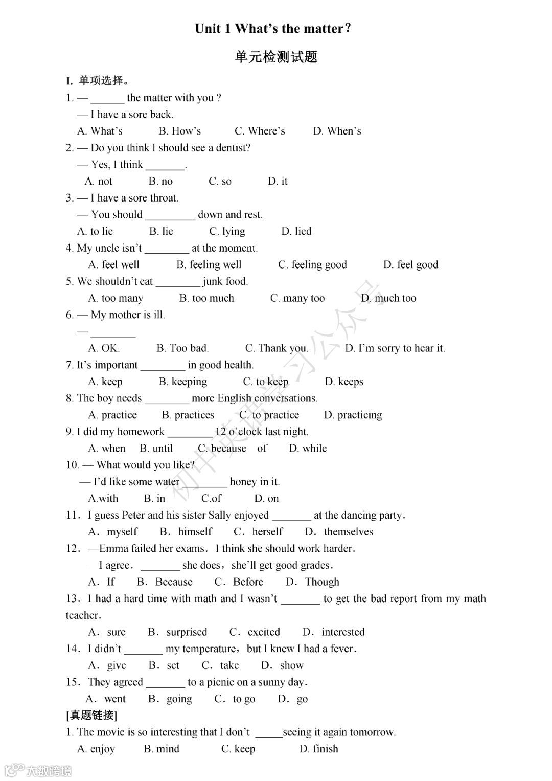 1. A。What’s the matter with you? 习惯用语,“你怎么了?”