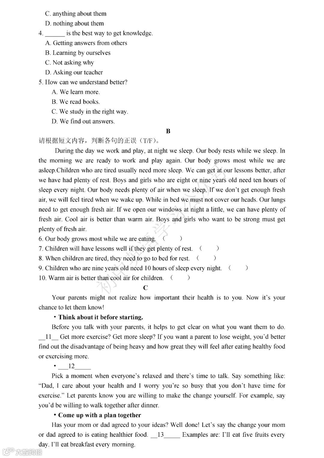 6. F。由句子“Our body grows most while we areasleep”可知。