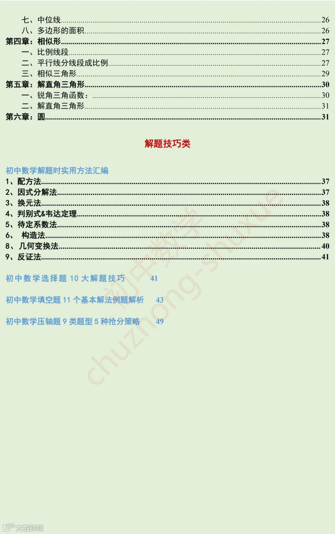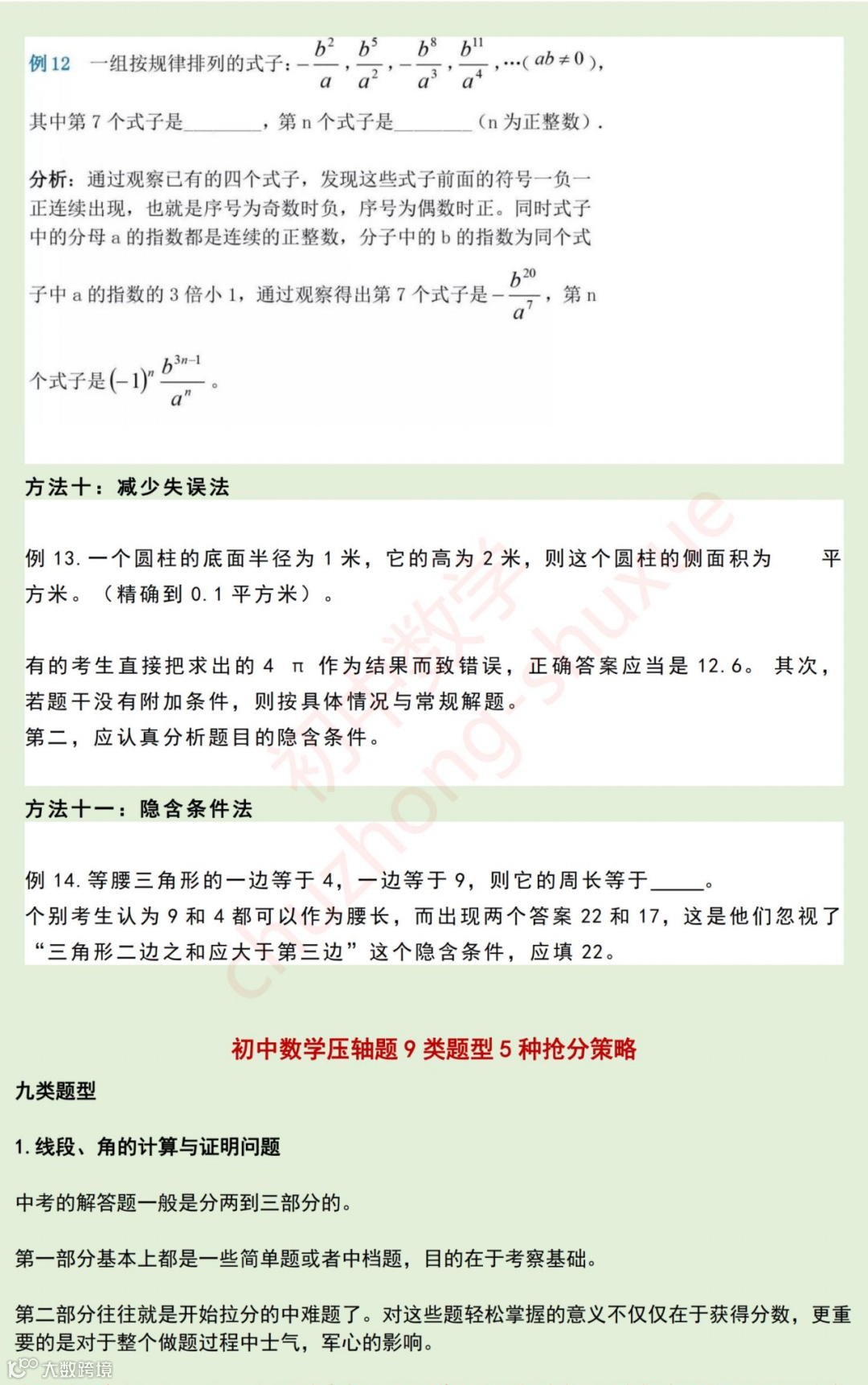 数学老师熬夜整理:初中数学考点、技巧全汇总,中考满分必看