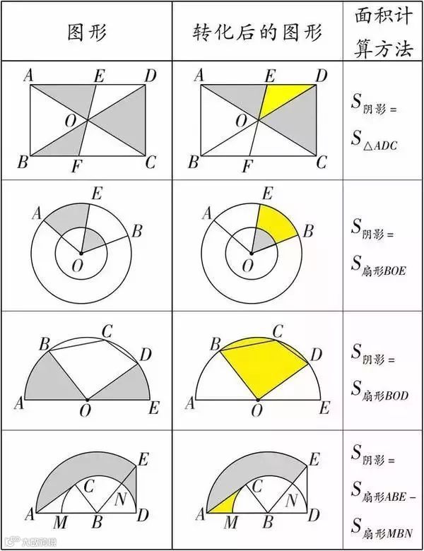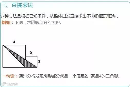 这属于最简单的方法,阴影面积是一个常规的几何图形,例如三角形、正方形等等。简单举出2个例子: