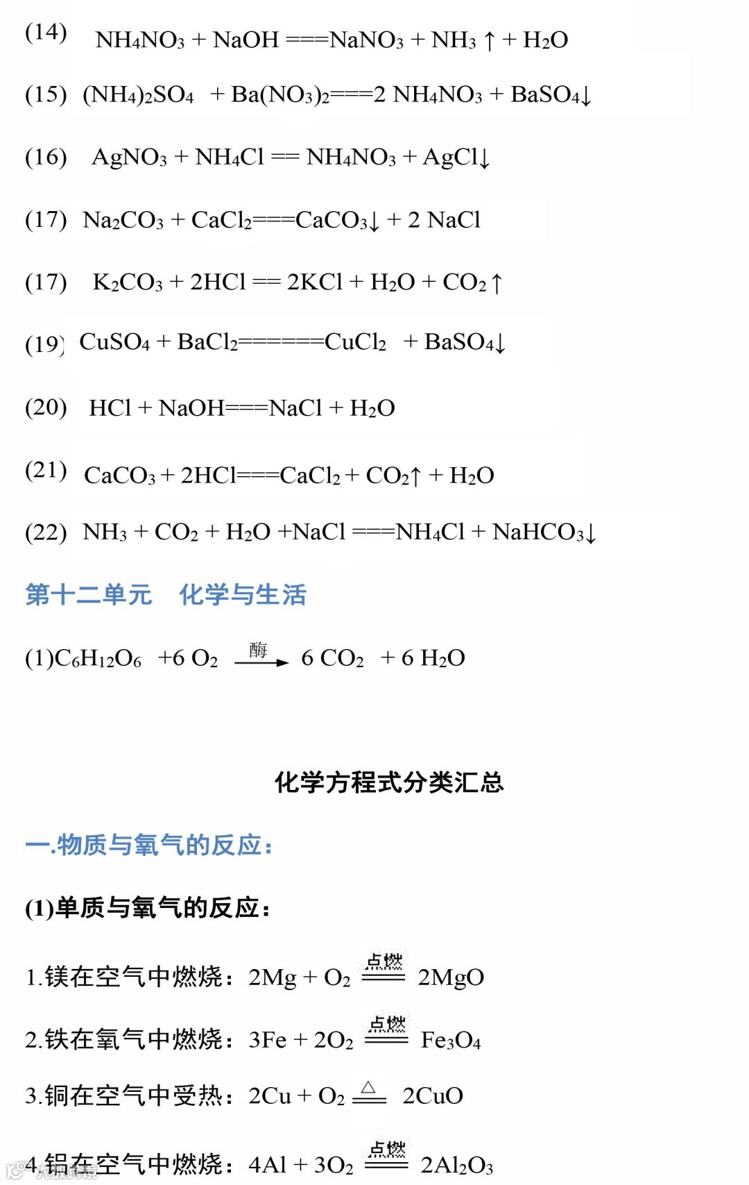 初中化学化学方程式汇总,非常齐全,强烈建议收藏!