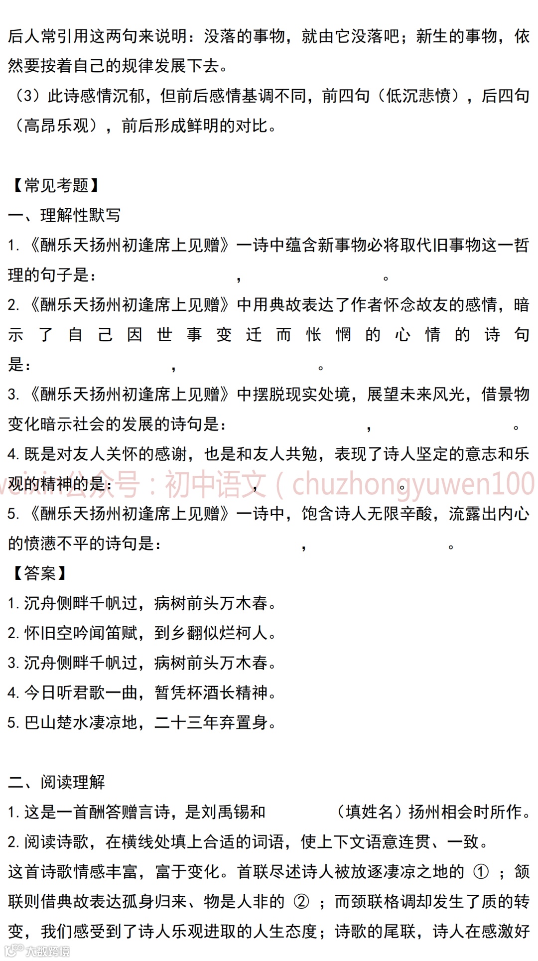 初中语文九上古诗词超全整理,译文+常识+赏析+主题,暑假预习、中考复习必看!