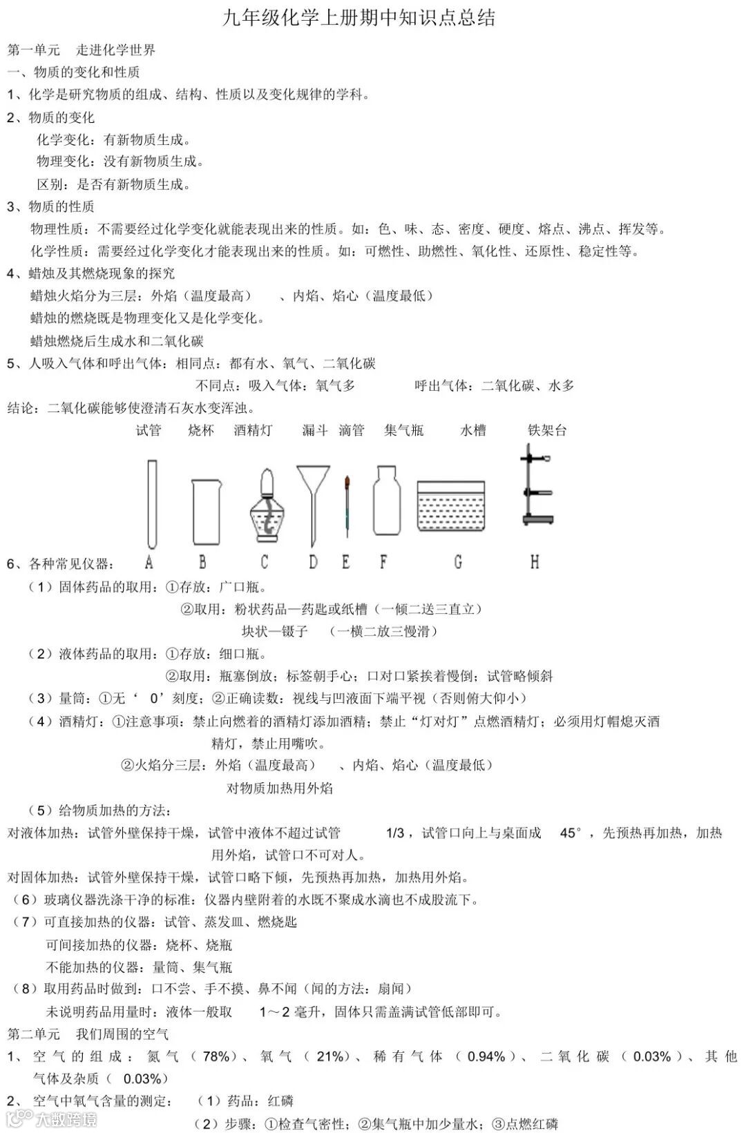 初中化学期中考试常考知识点总结,替孩子转发打印一份吧!