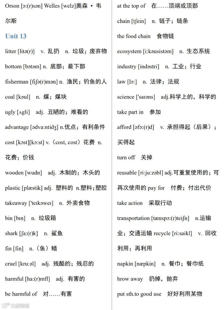 初中三年,6本英语课本,汇成一份英语单词表!替孩子转发!