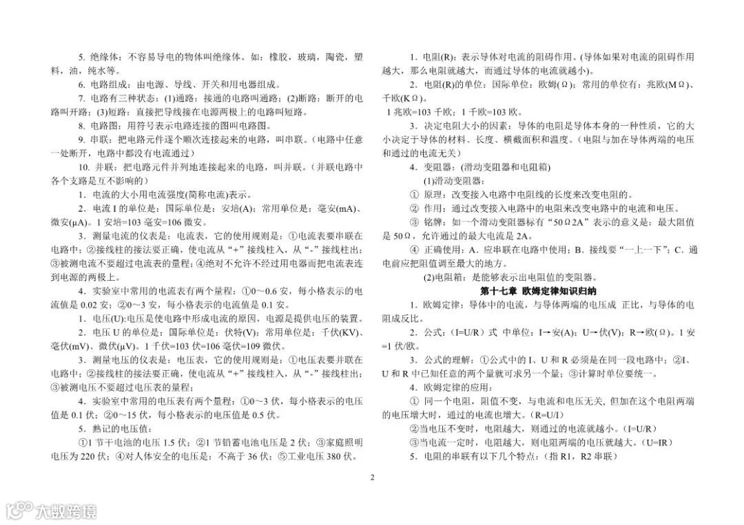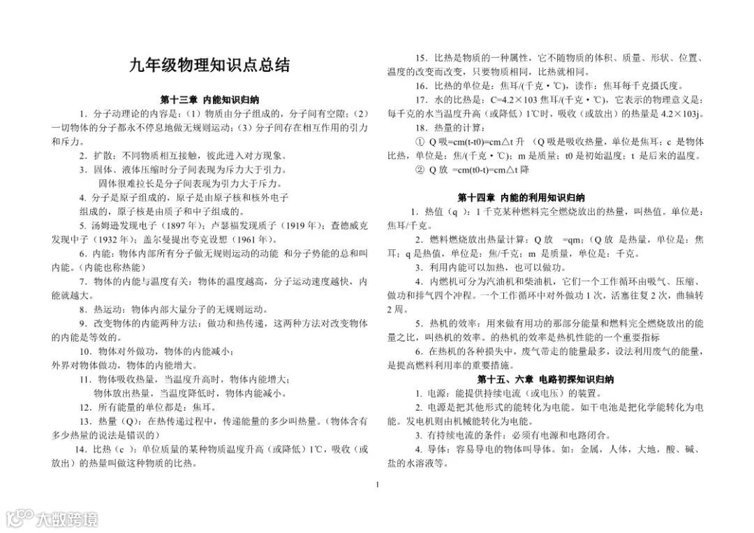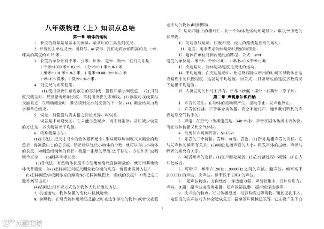 初中物理知识点总结