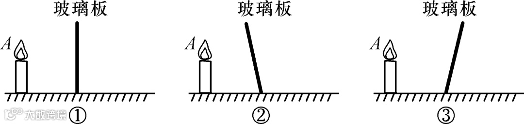 (8)小滨将蜡烛A竖直放在水平桌面的白纸上,点燃蜡烛A,她观察发现:平板玻璃中蜡烛A的像偏低且倾斜.你认为在图乙所示的①、②、③三幅图中,________图是产生以上实验现象的原因.