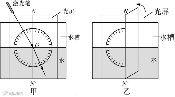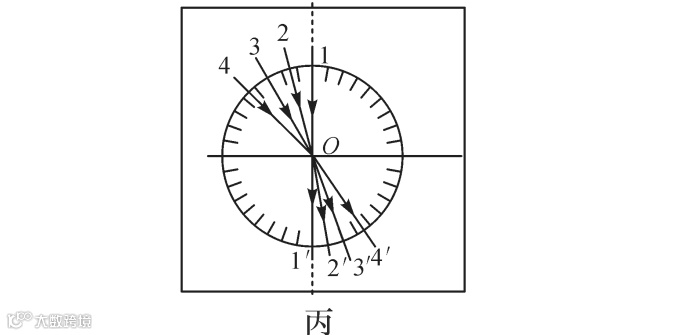 (4)图丙中当激光笔从水中沿4′方向射入O点,则折射光线将会沿着________(填“1”“2”“3”或“4”)的方向射出,说明折射光路是________的.