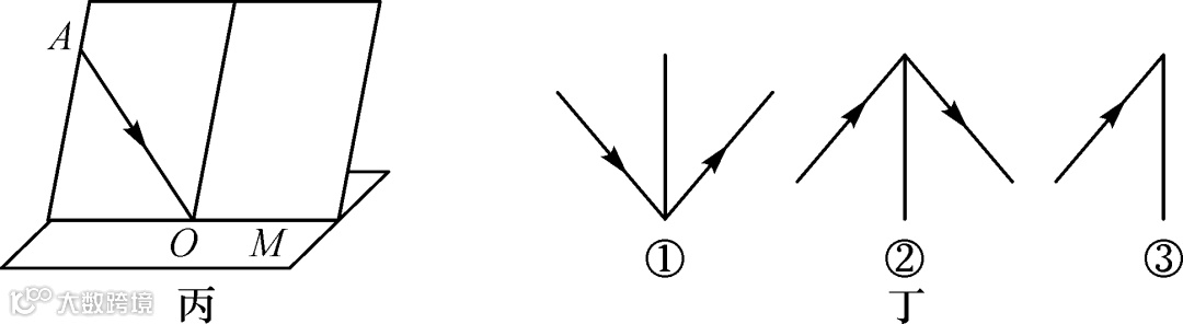 (7)实验过程中若将纸板倾斜,如图丙所示,让光仍贴着纸板沿AO方向射向镜面,此时反射光________(填“在”或“不在”)纸板这一平面内;通过平面镜观察镜中硬纸板的像,则看到的像是图丁中的________(填序号).