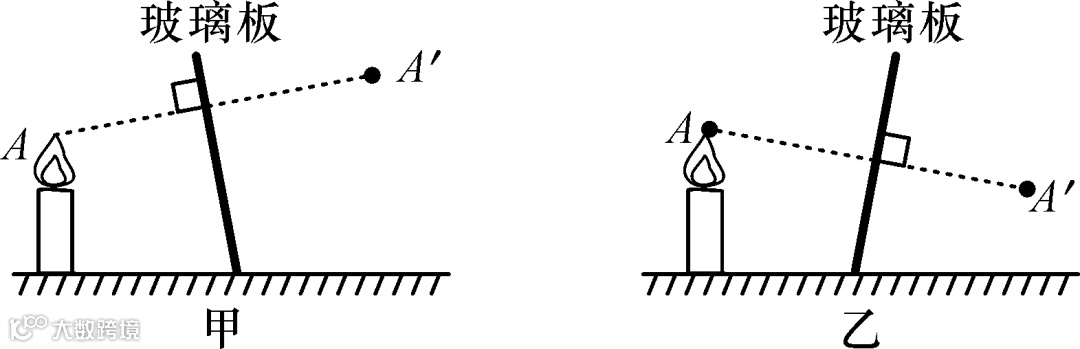 6.玻璃板要与水平桌面垂直放置(为确保物与像重合,若玻璃板向点燃的蜡烛倾斜,则所成的像偏高,如图甲;若向未点燃的蜡烛倾斜,则所成的像偏低,如图乙)