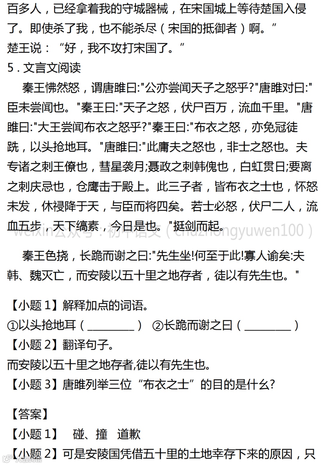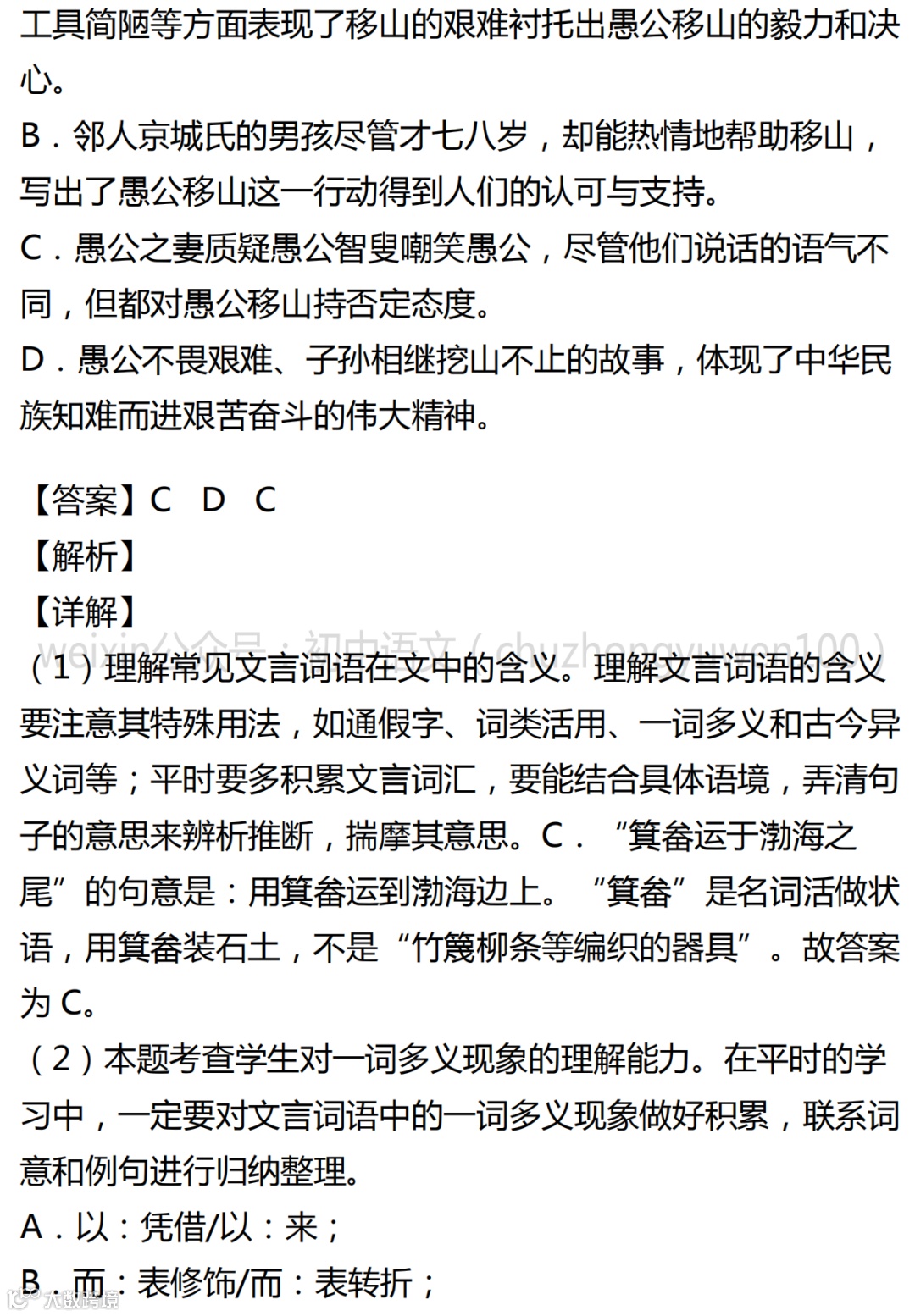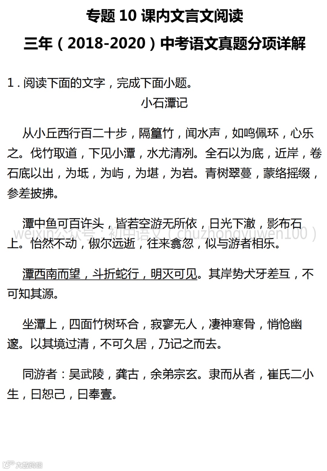 初中语文课内文言文阅读(2018-2020) 3年中考真题汇编,考前冲刺!