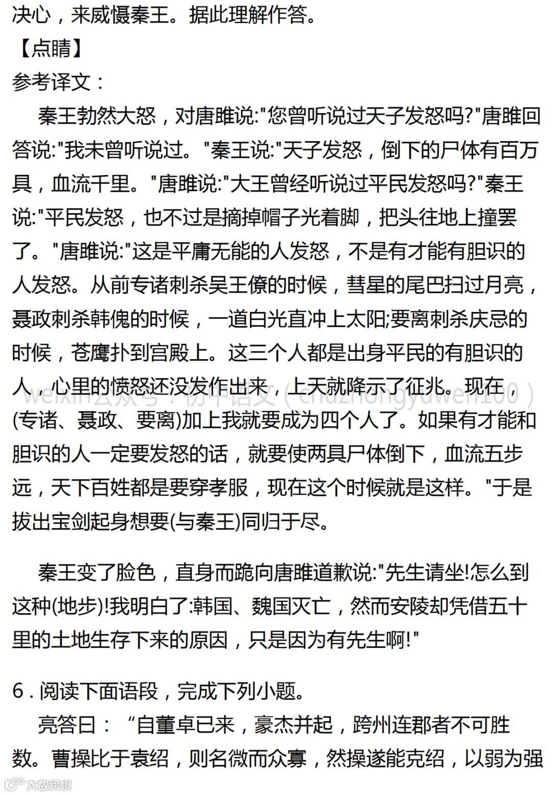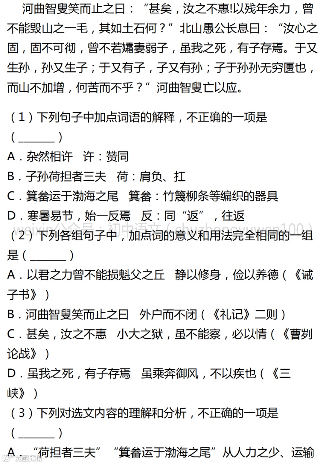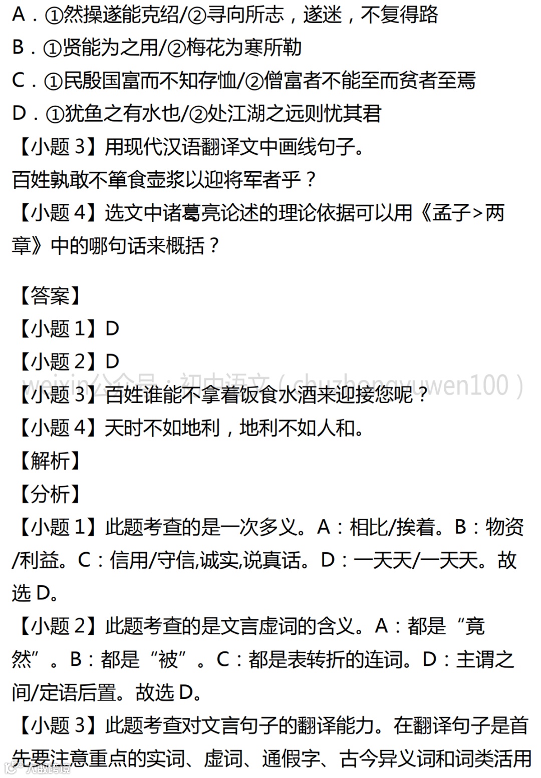 初中语文课内文言文阅读(2018-2020) 3年中考真题汇编,考前冲刺!