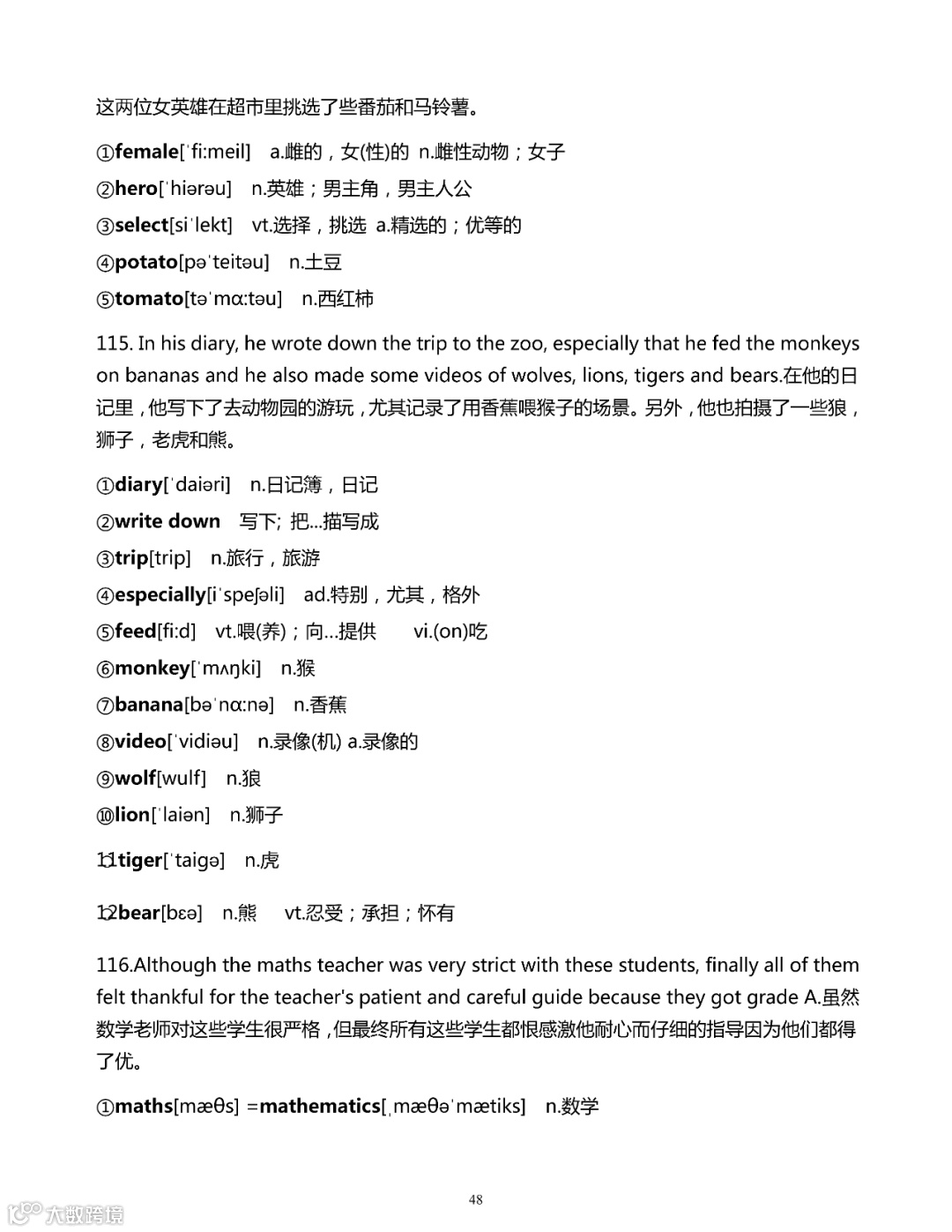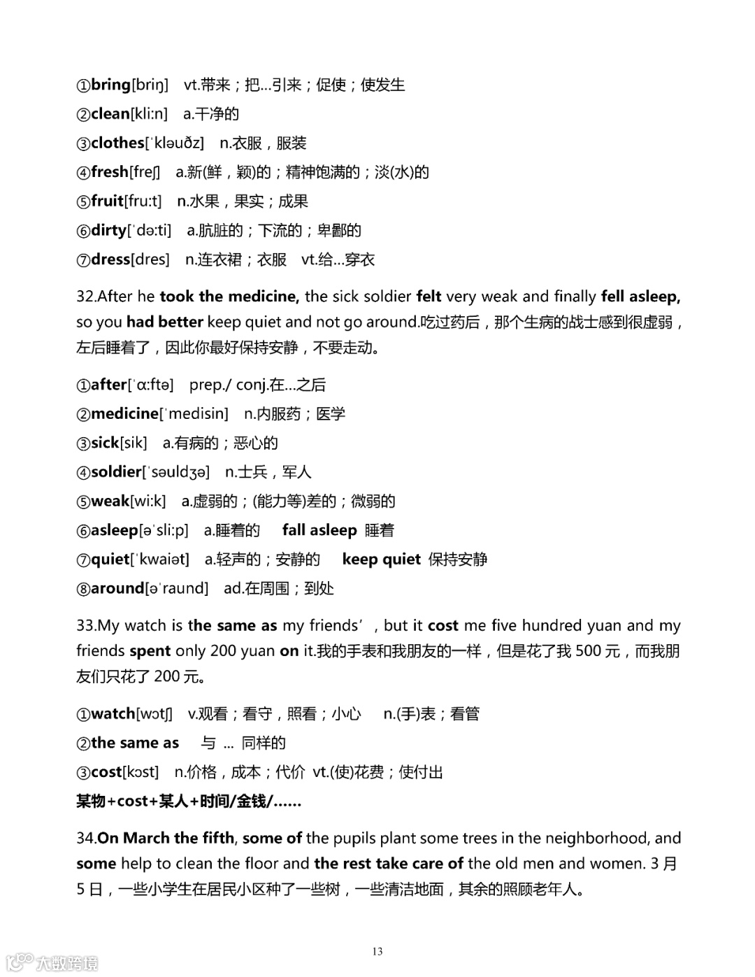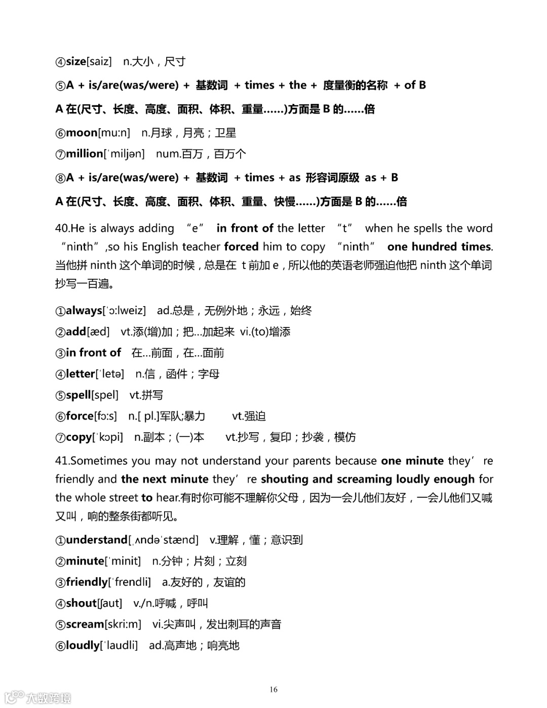 200句话搞定中考1600单词(详解版),新学期一定要背熟!