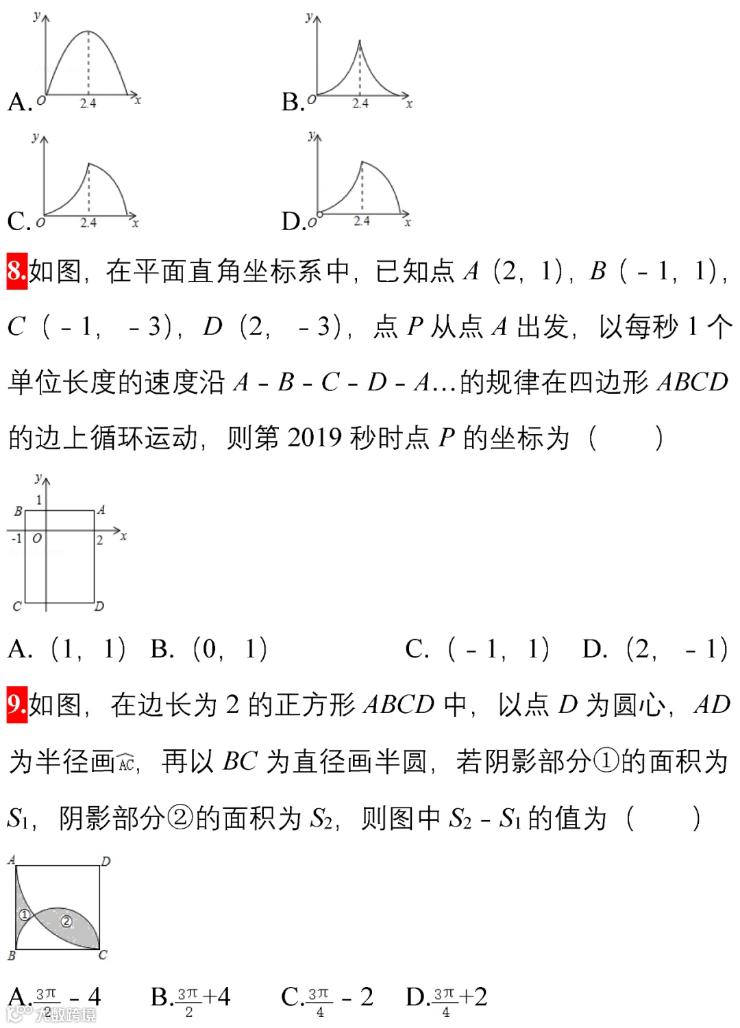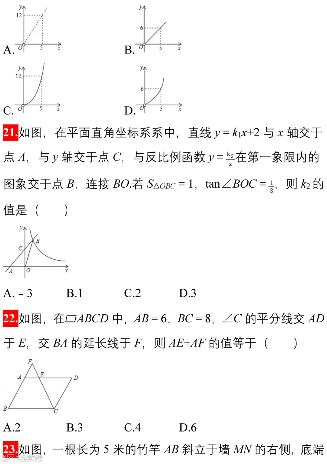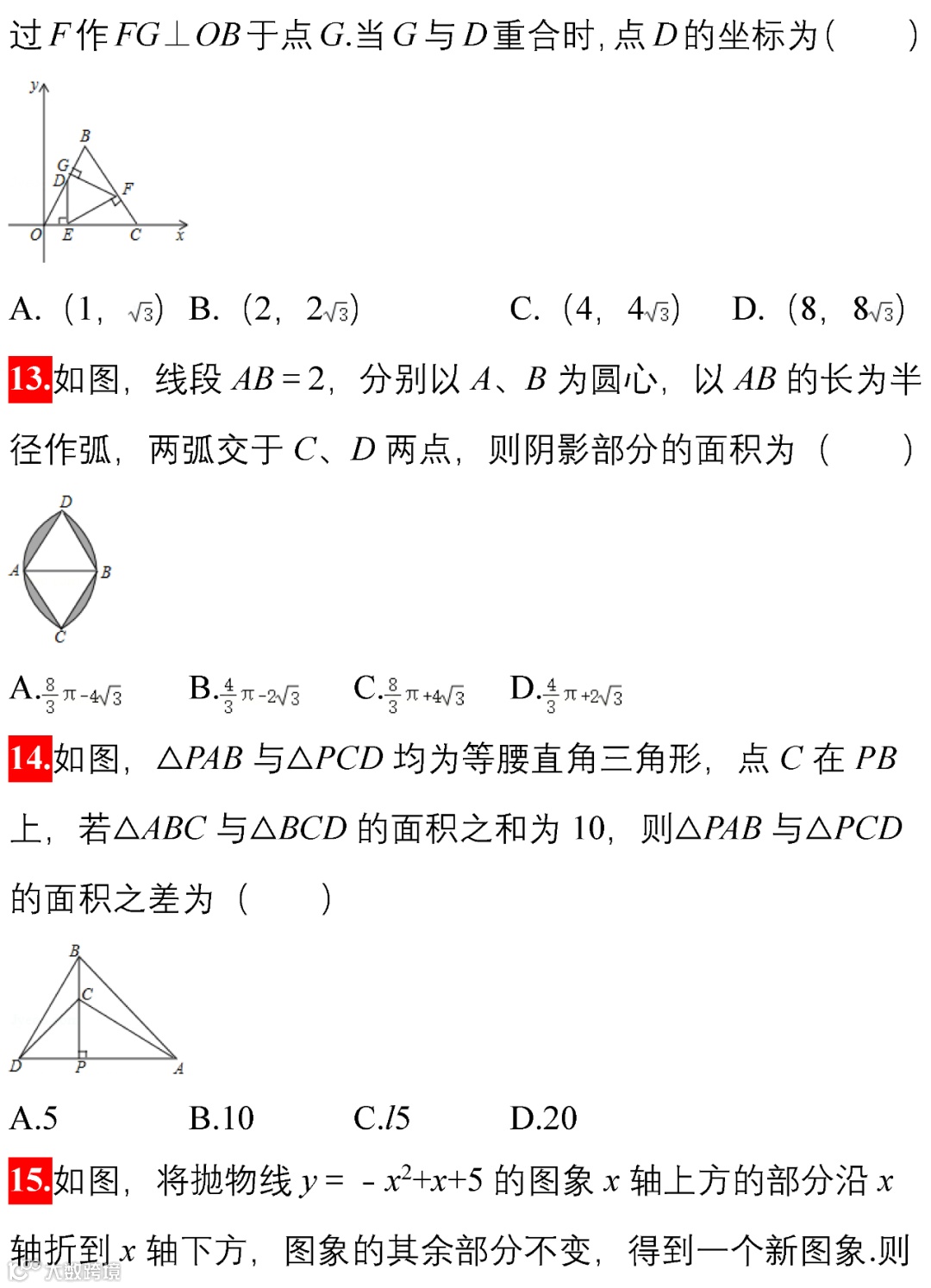 2021中考数学选择填空必练50题!转给孩子刷一遍!