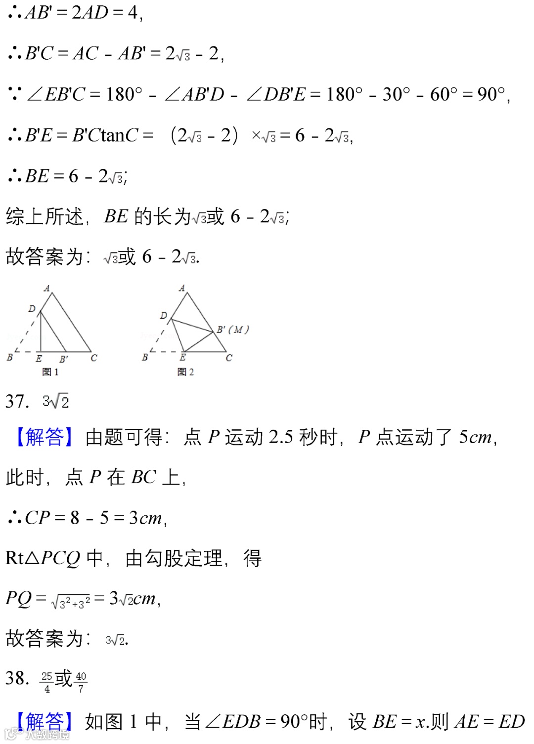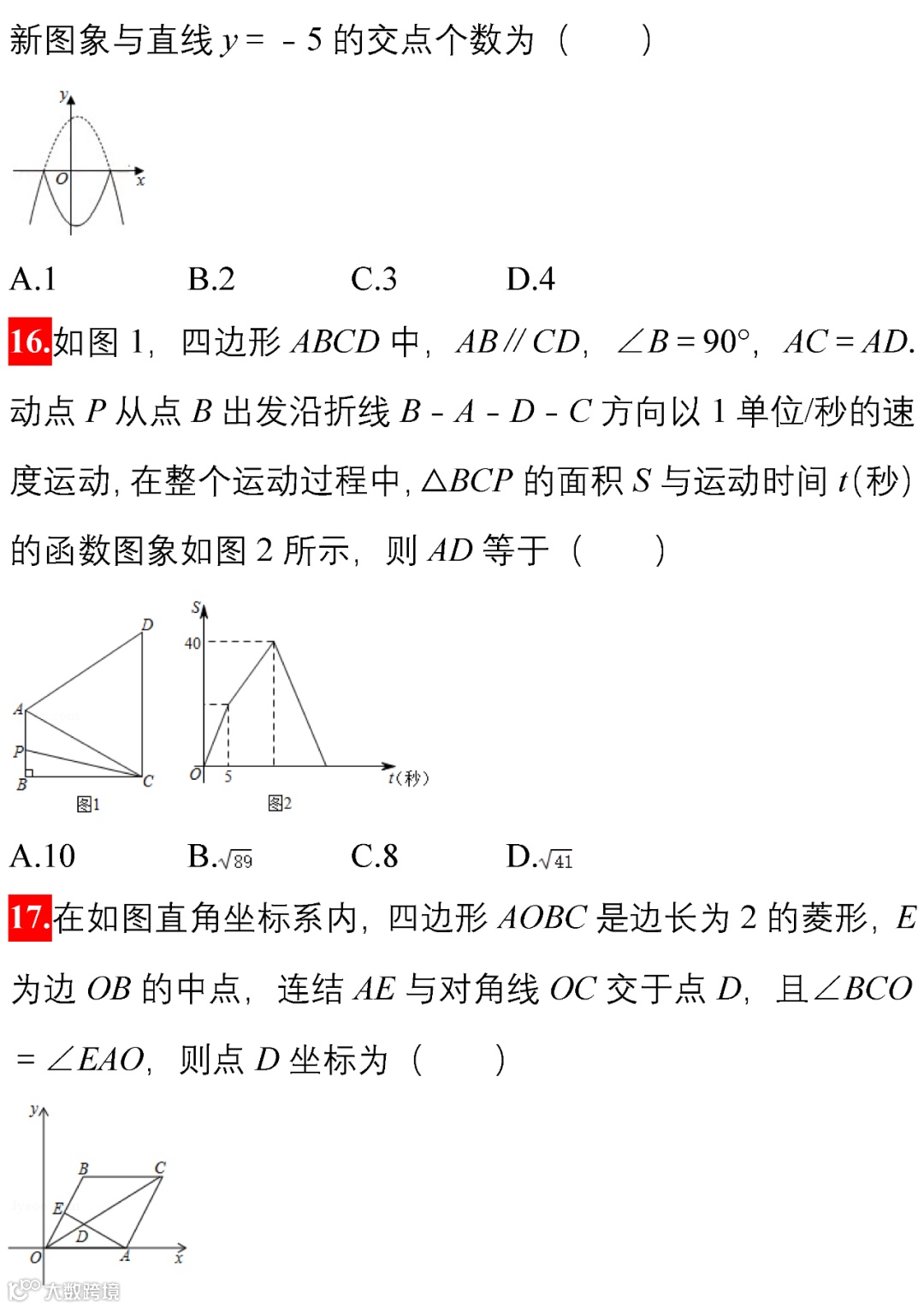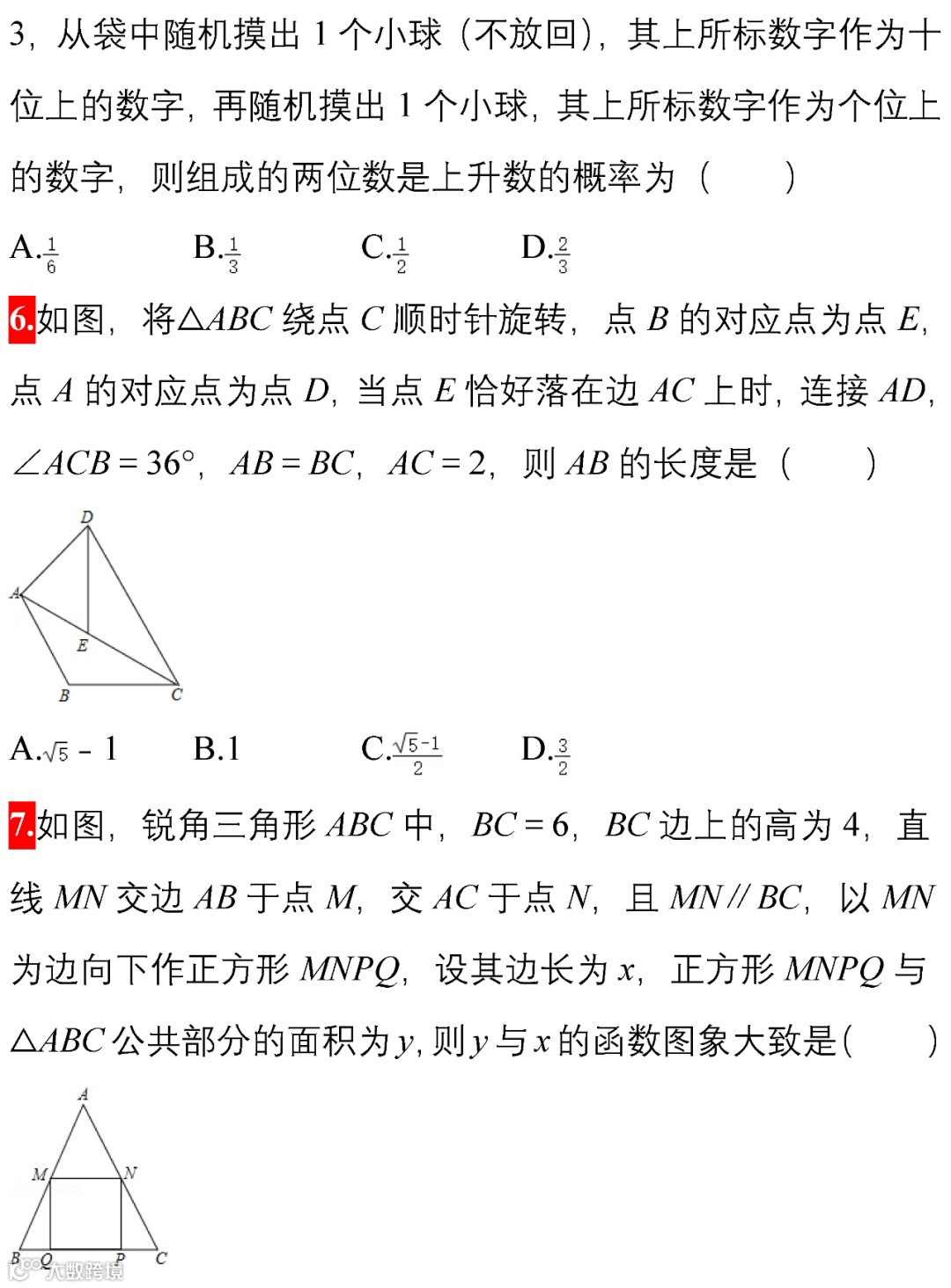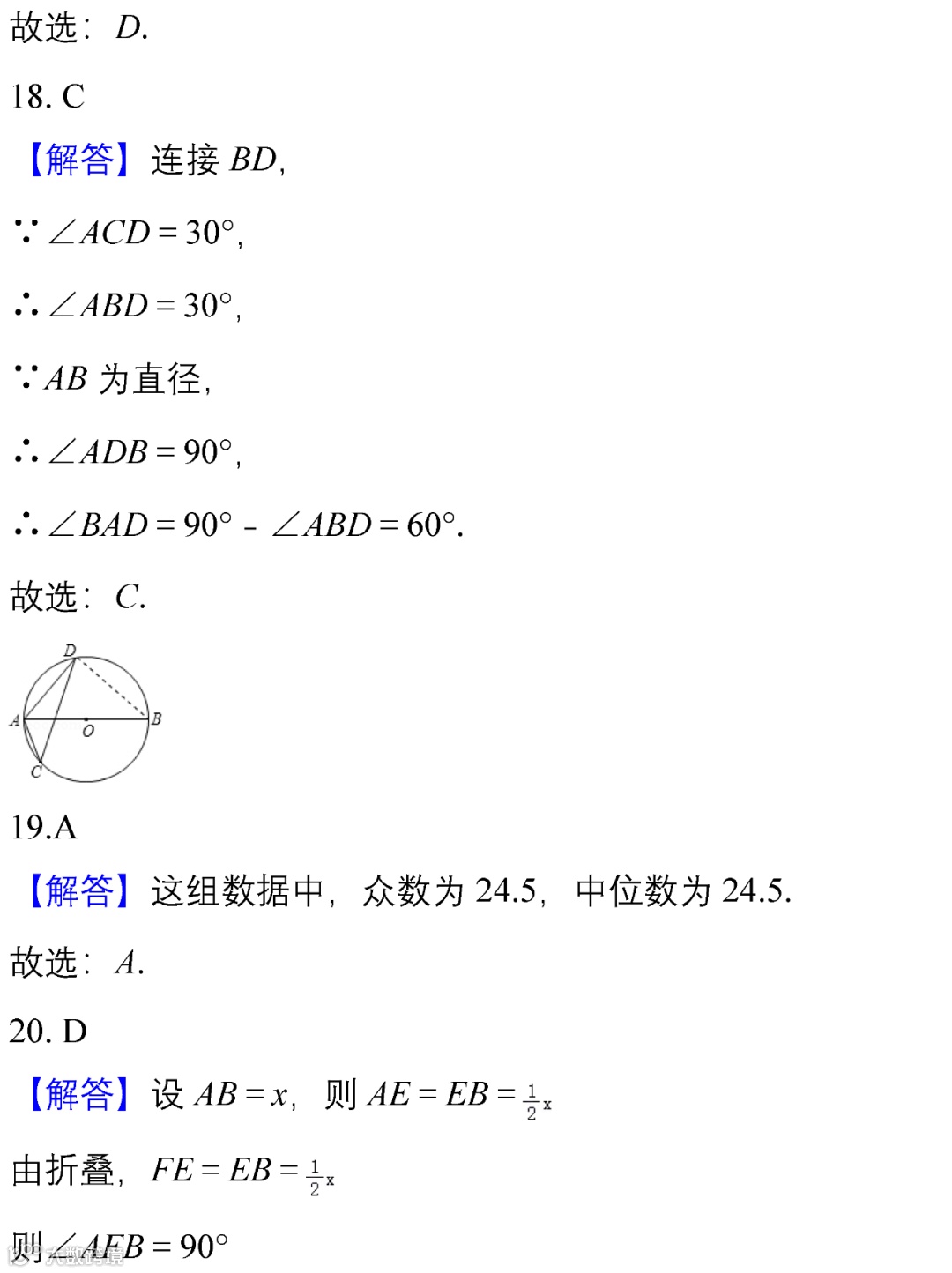 2021中考数学选择填空必练50题!转给孩子刷一遍!