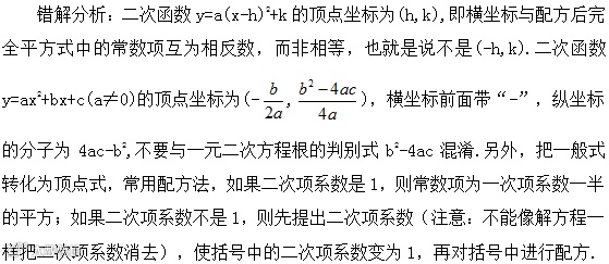 四、求顶点坐标时混淆符号