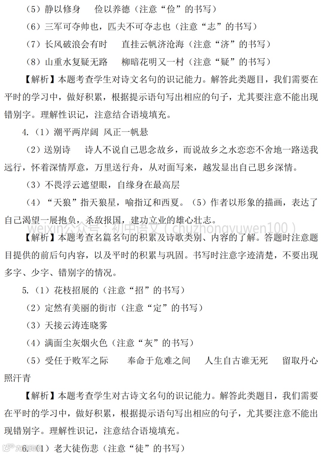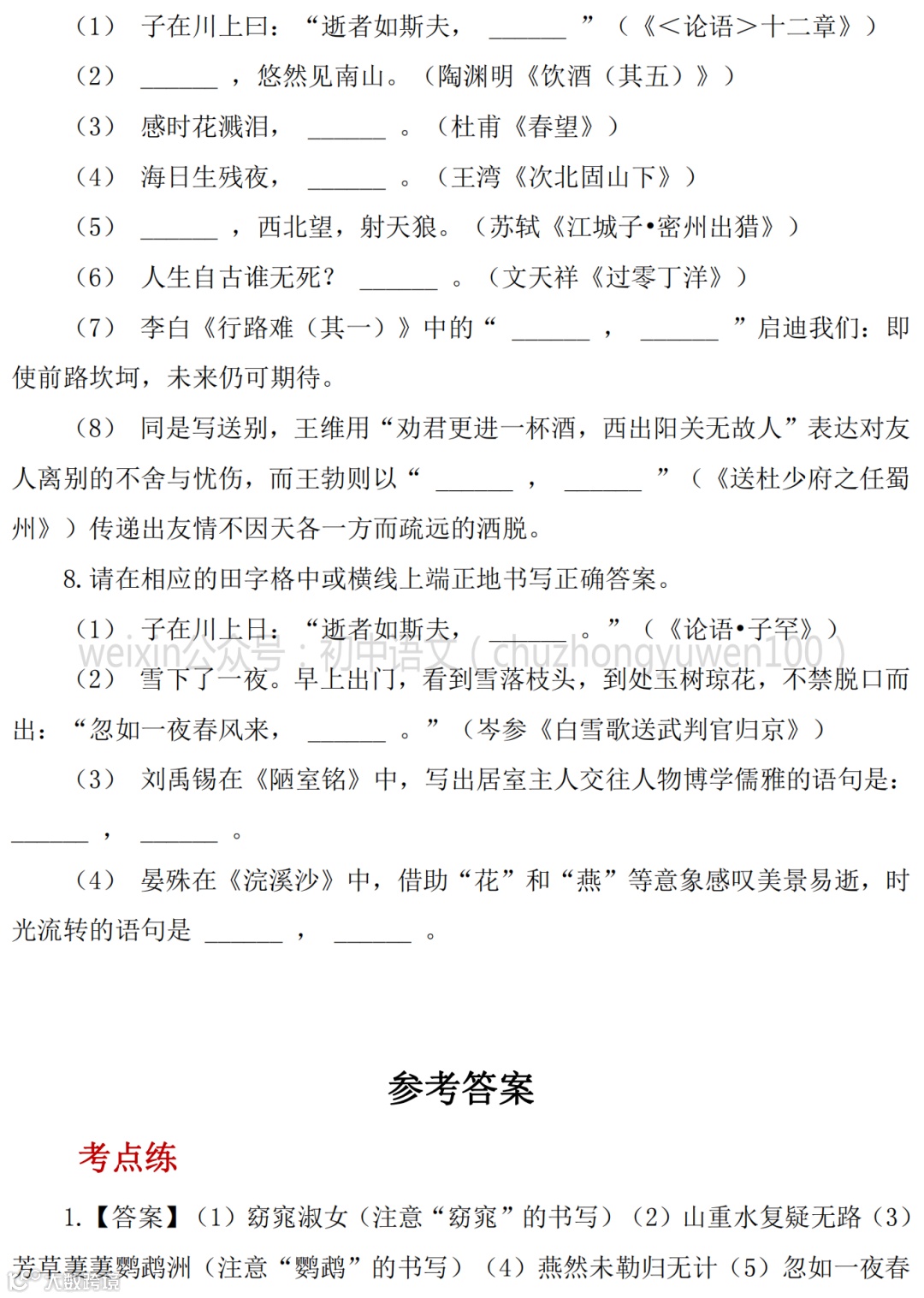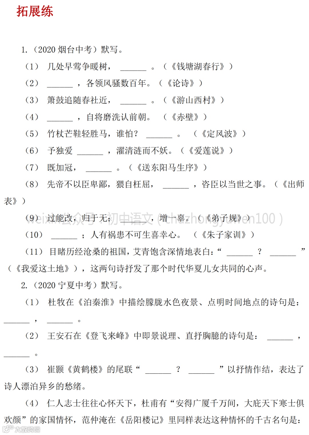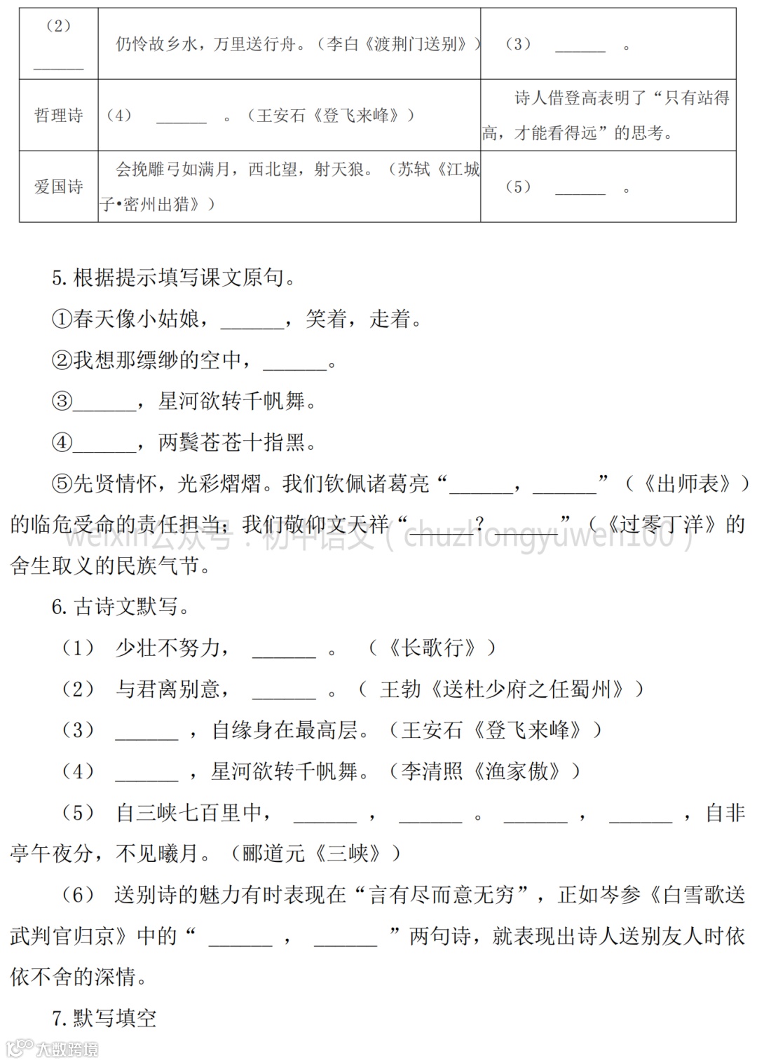 2021中考:名句名篇默写111题,高分学霸已收藏