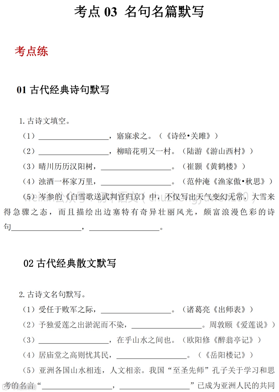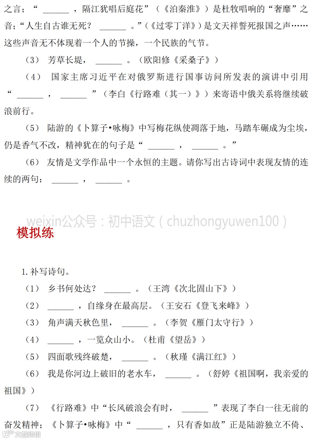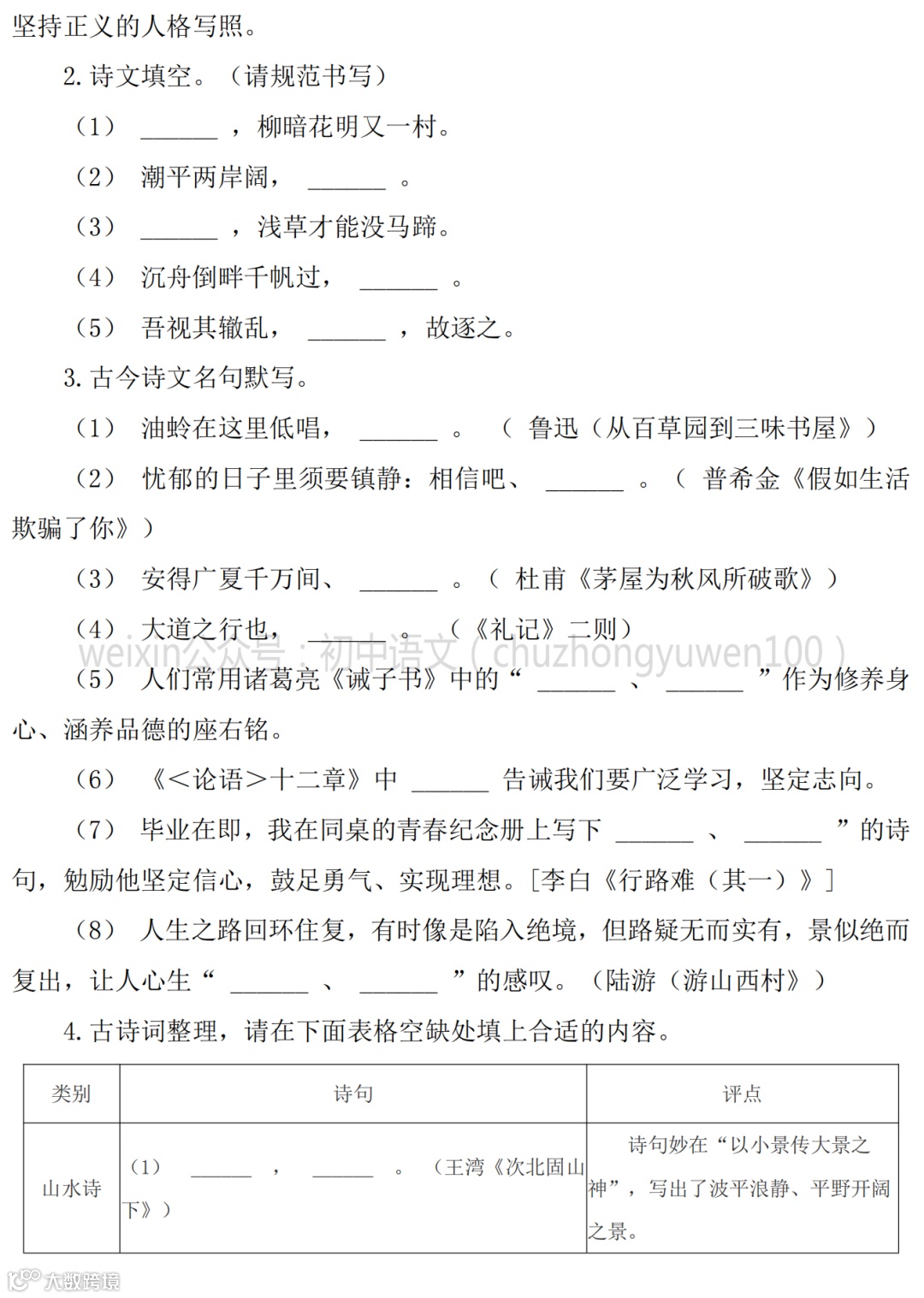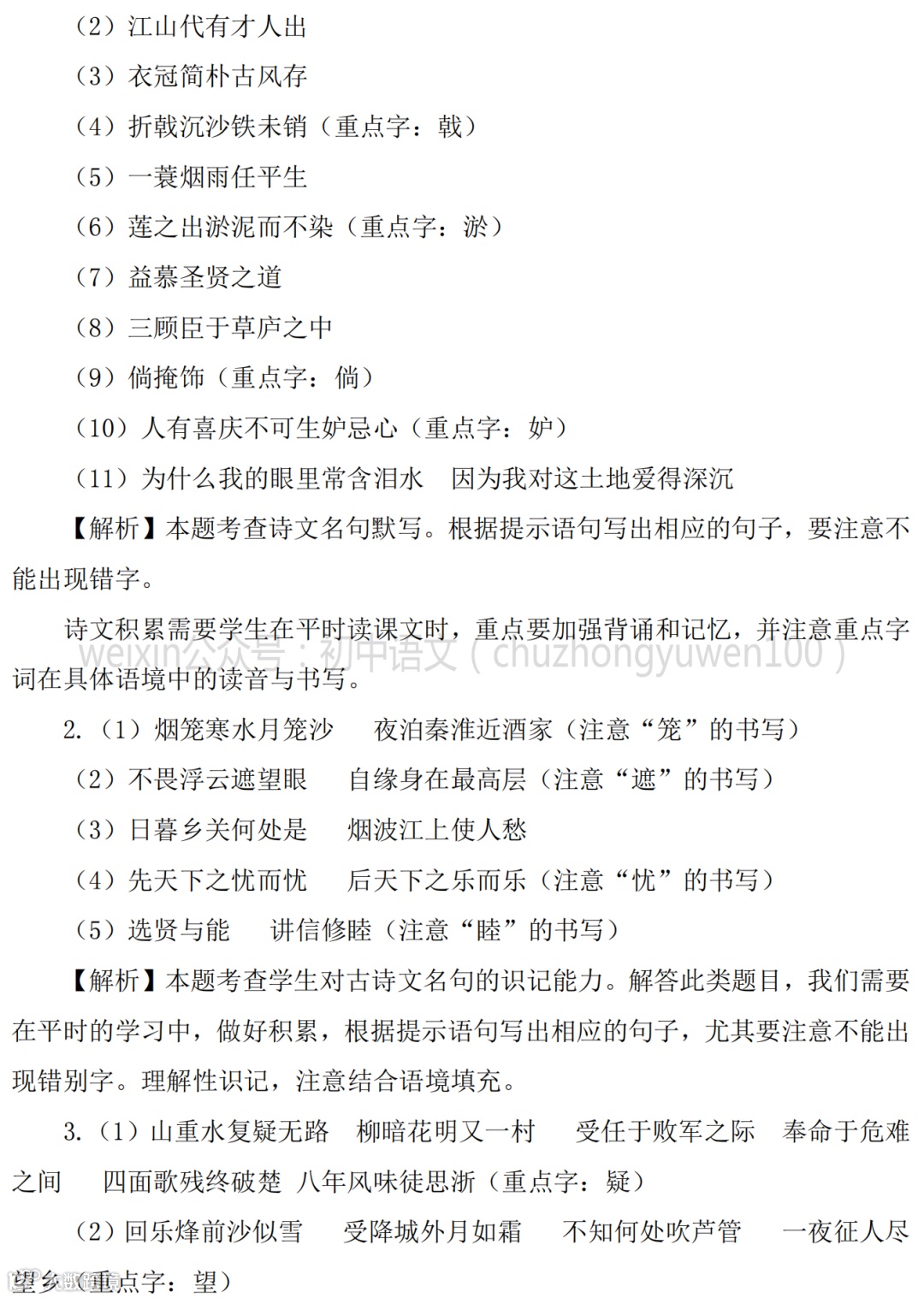 2021中考:名句名篇默写111题,高分学霸已收藏