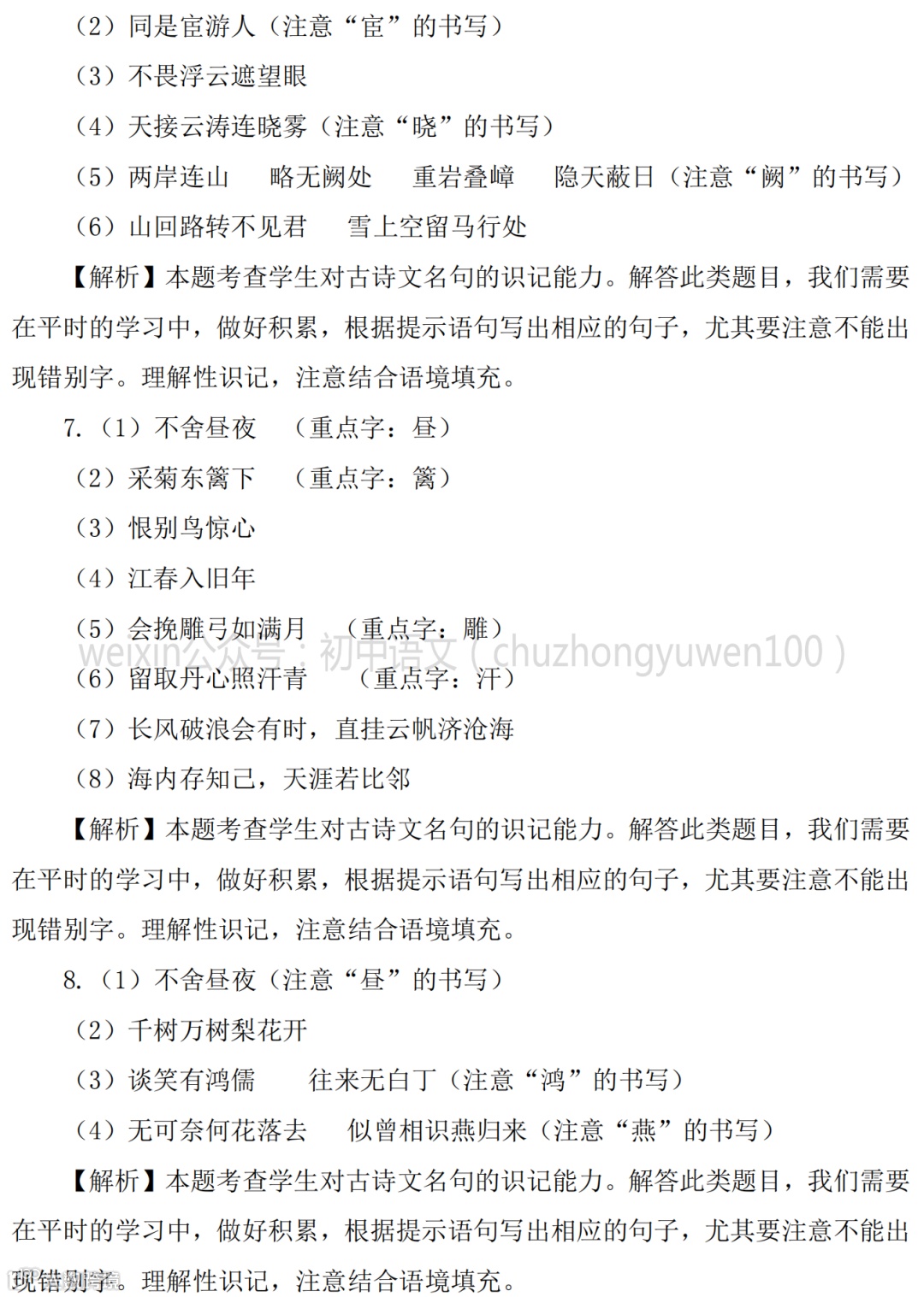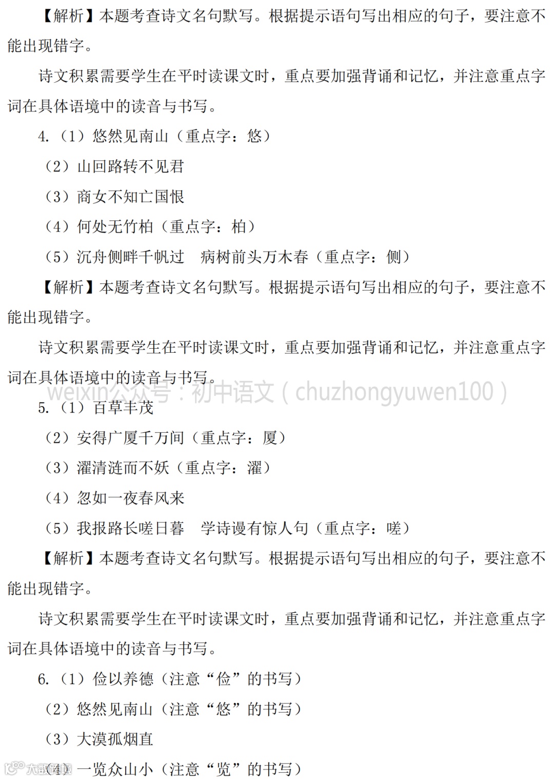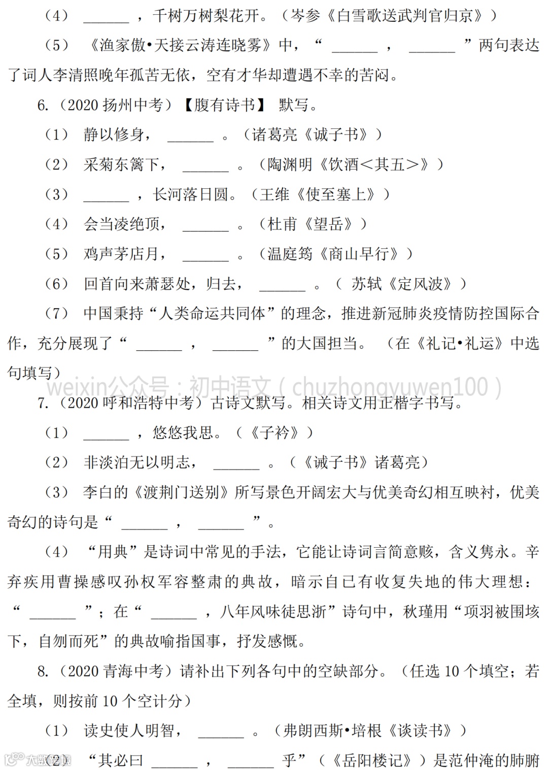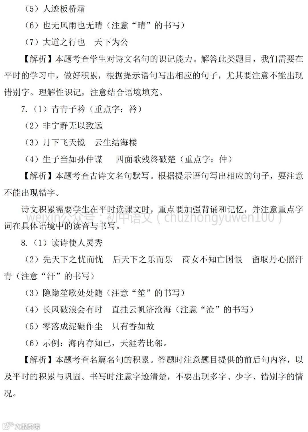 2021中考:名句名篇默写111题,高分学霸已收藏