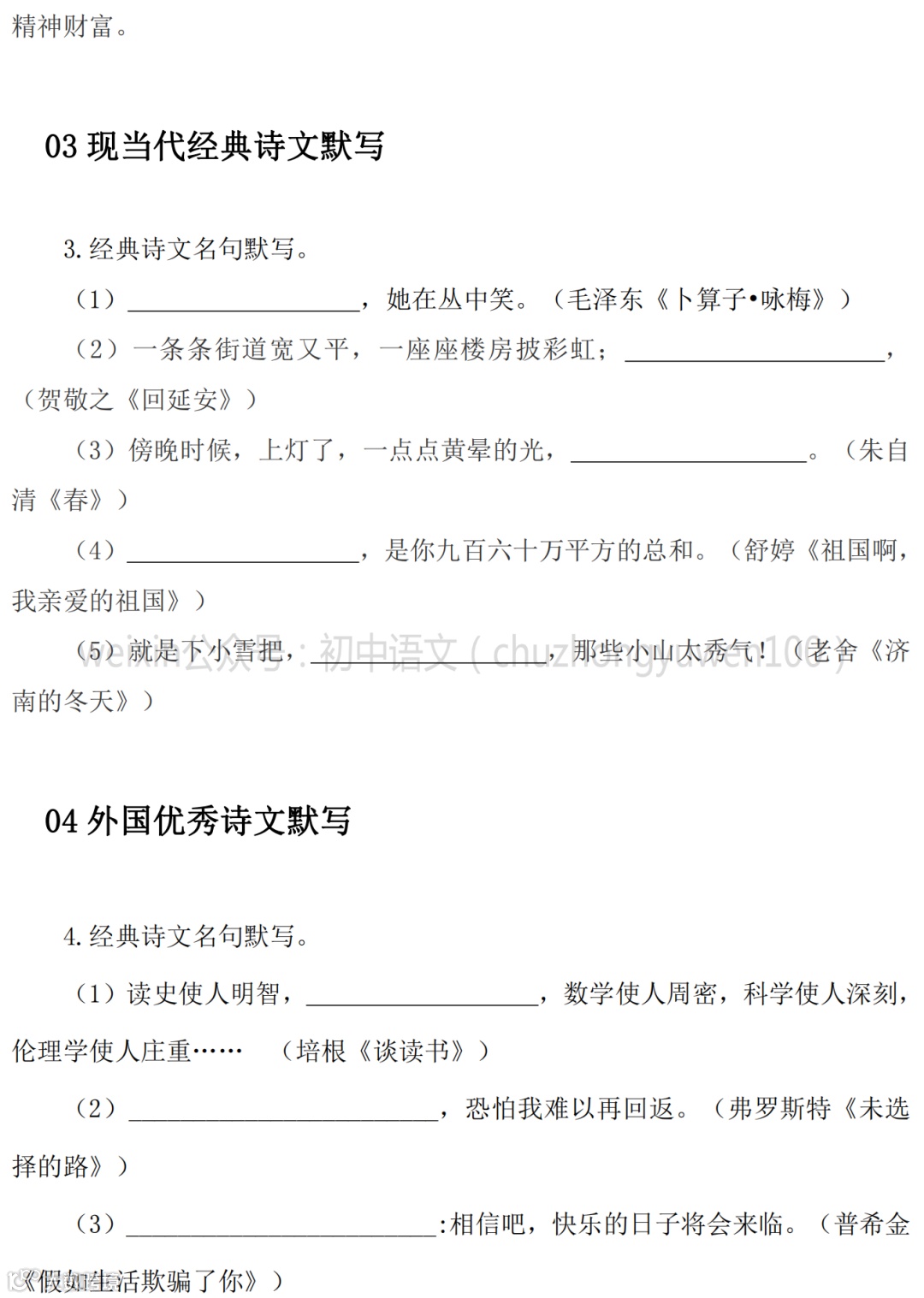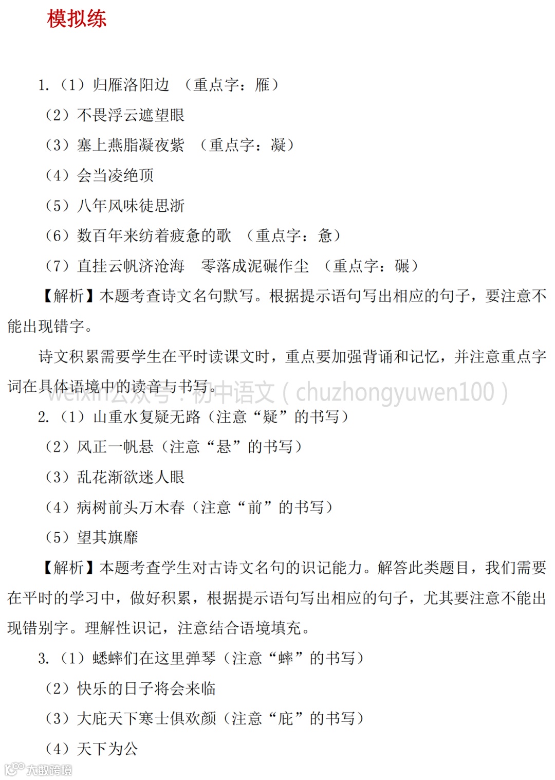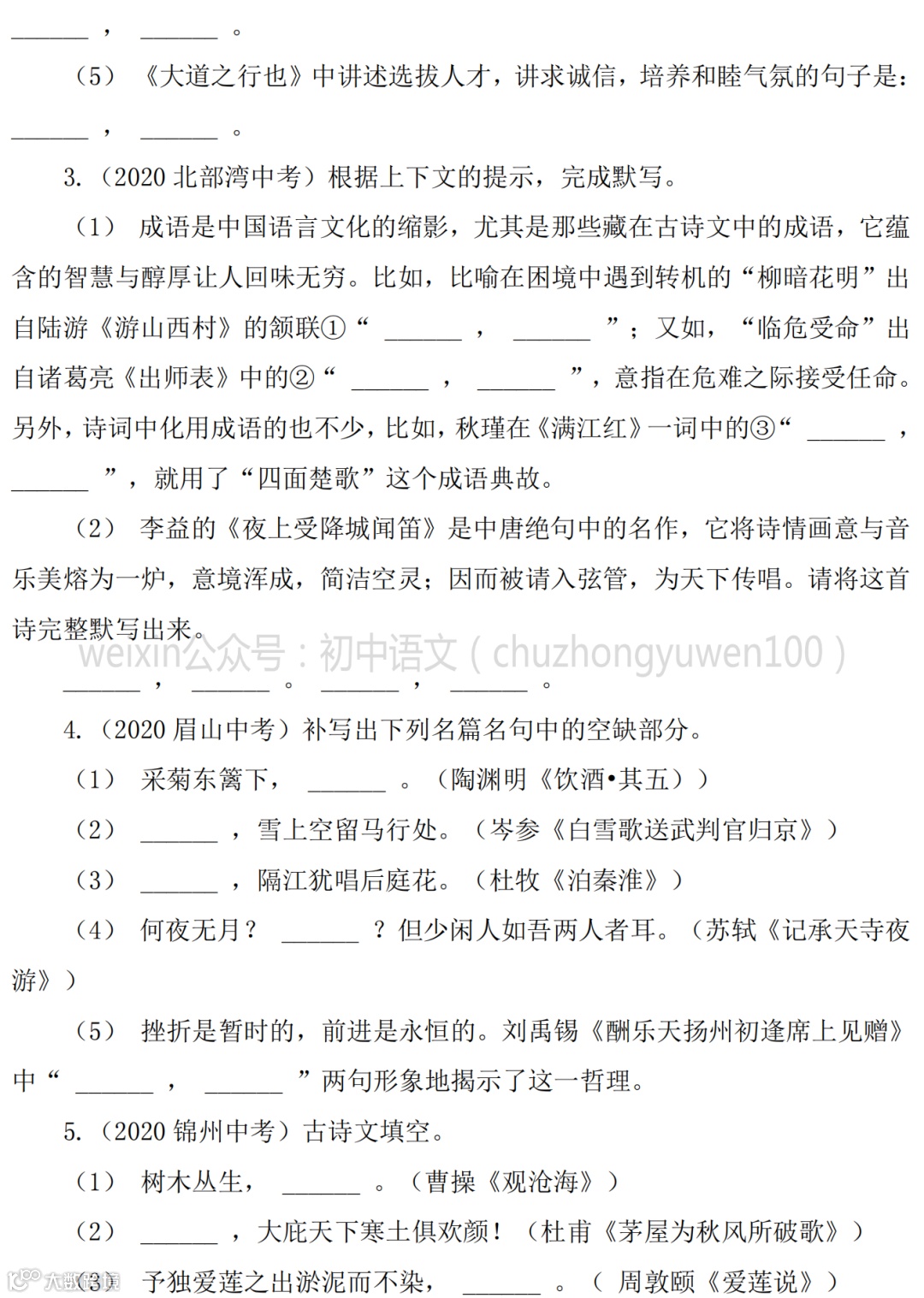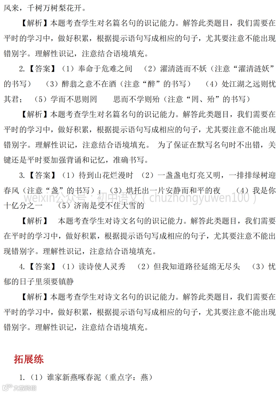 2021中考:名句名篇默写111题,高分学霸已收藏