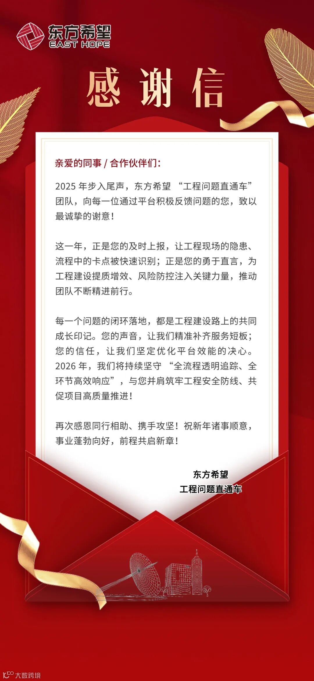 致所有向东方希望“工程问题直通车”反馈问题伙伴的感谢信!